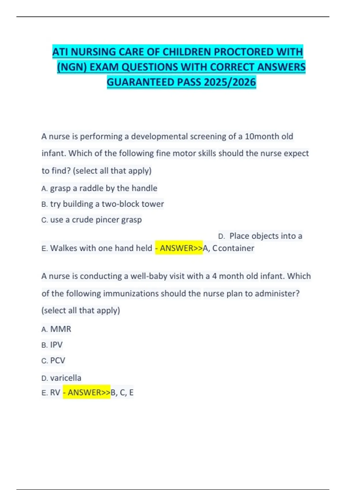 ATI NURSING CARE OF CHILDREN PROCTORED WITH