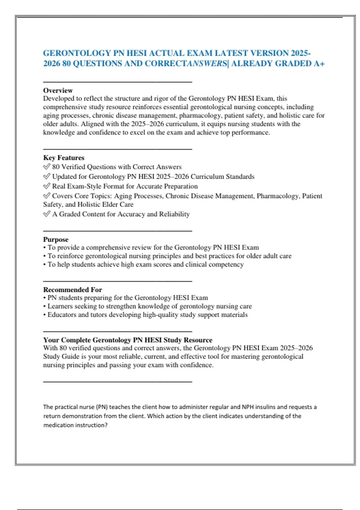 With 80 verified questions and correct answers, the Gerontology PN HESI Exam 2025–2026