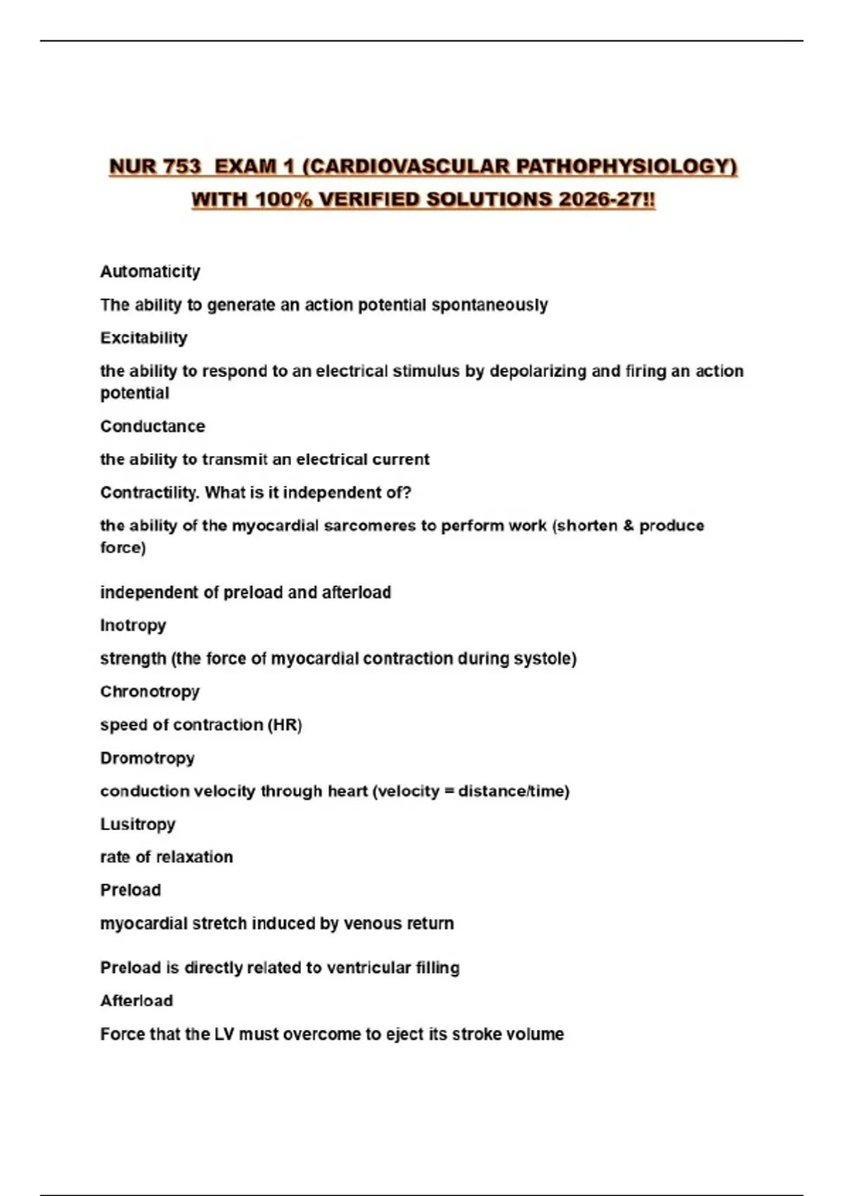 NUR 753 EXAM 1 (CARDIOVASCULAR PATHOPHYSIOLOGY) WITH 100% VERIFIED SOLUTIONS 2026-27!!...