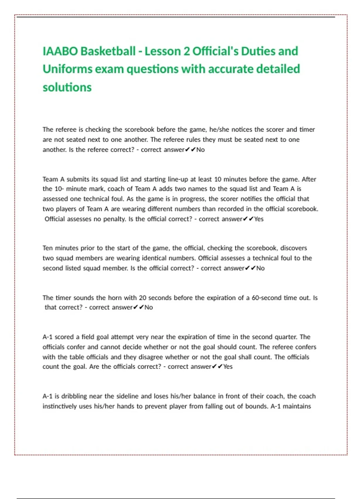 IAABO Basketball - Lesson 2 Official-s Duties and Uniforms exam questions with accurate detailed solutions