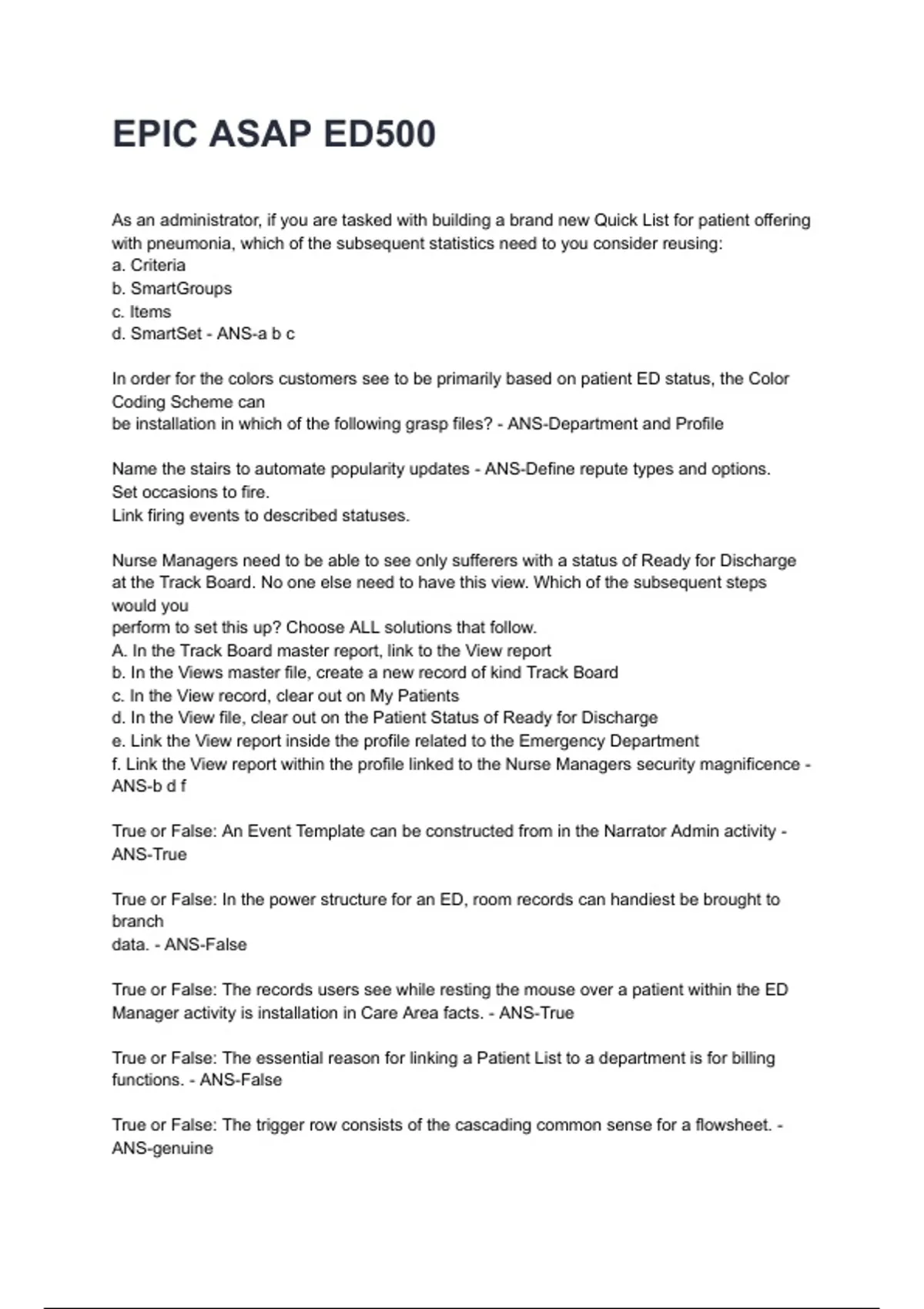 EPIC ASAP ED500 NEWEST 2026/2027 ACTUAL EXAM COMPLETE QUESTIONS AND CORRECT DETAILED ANSWERS (VERIFIED ANSWERS) |ALREADY GRADED A+||BRAND NEW!!