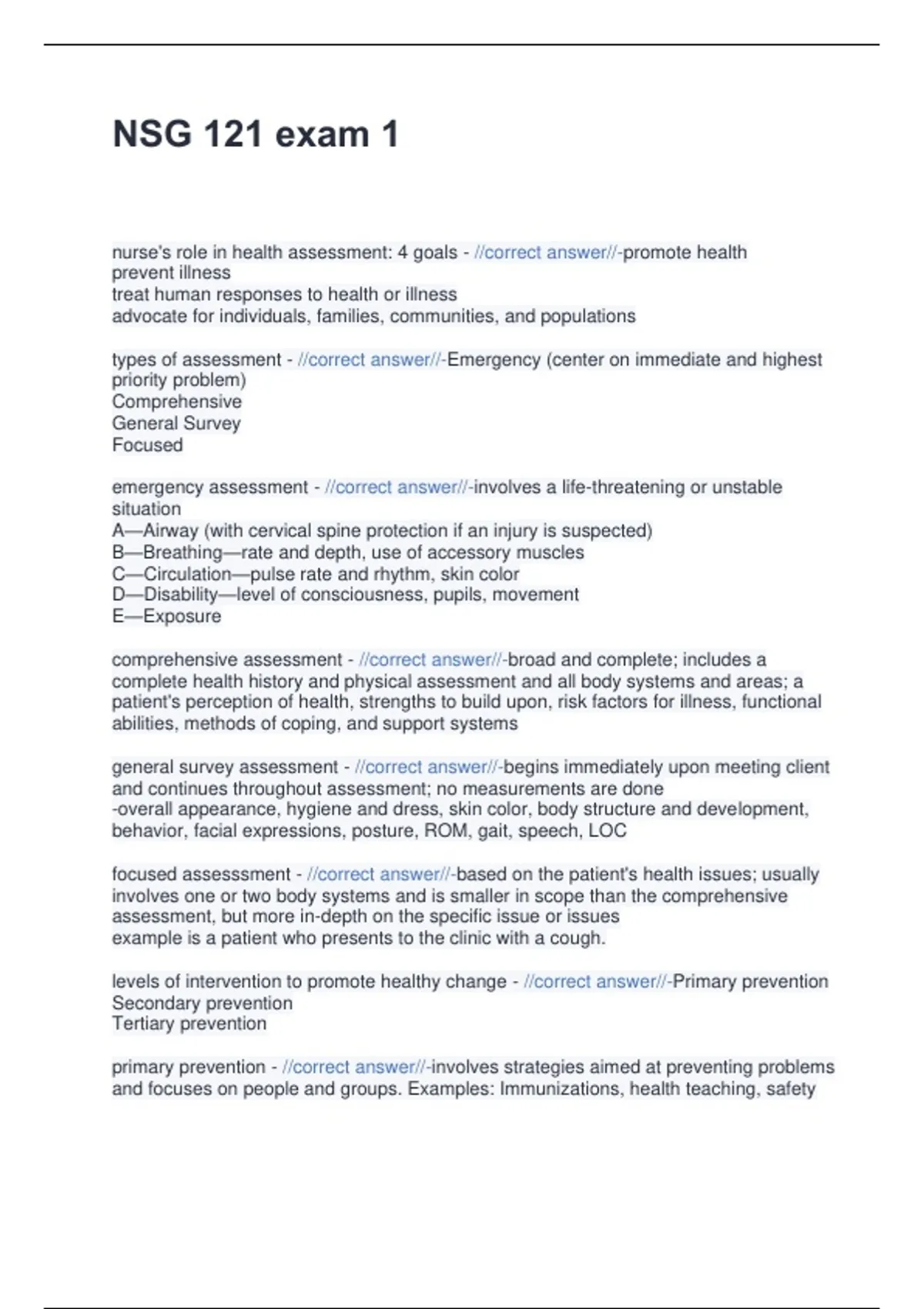 what is health assessment? - //correct answer//-gathering information about the health