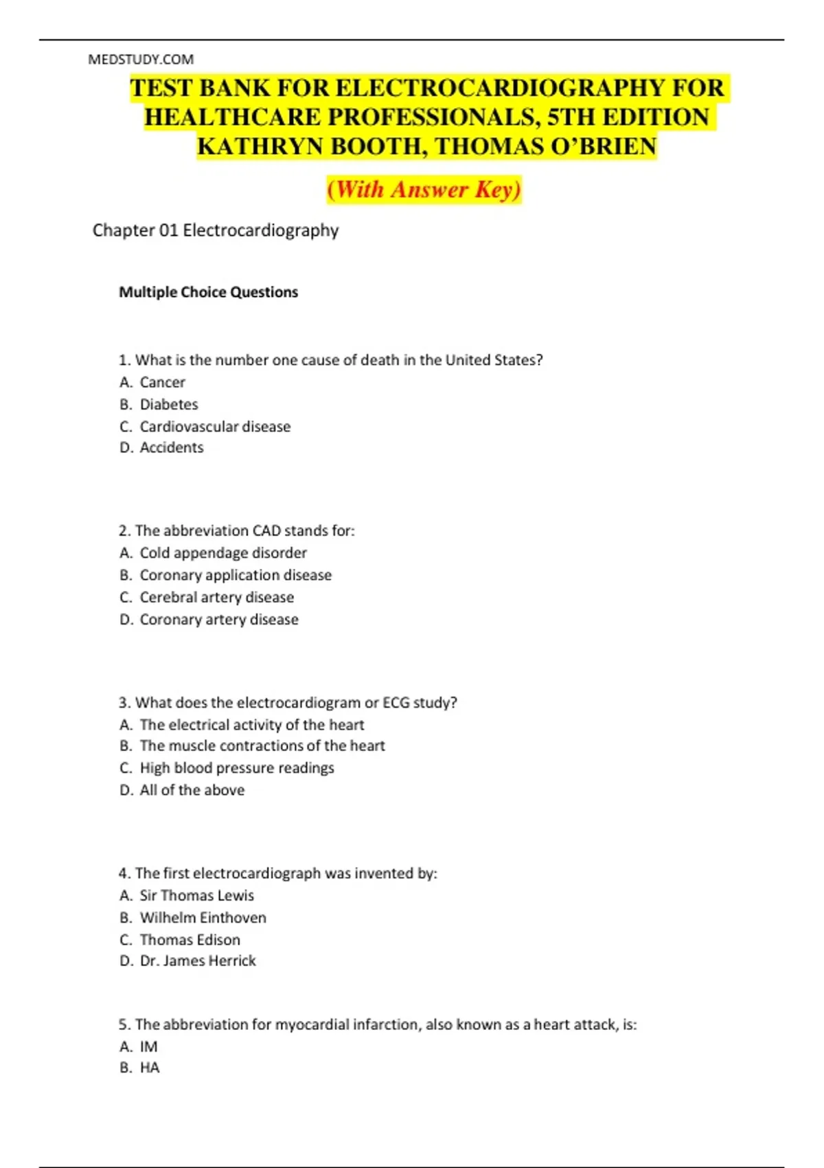 TEST BANK FOR ELECTROCARDIOGRAPHY FOR