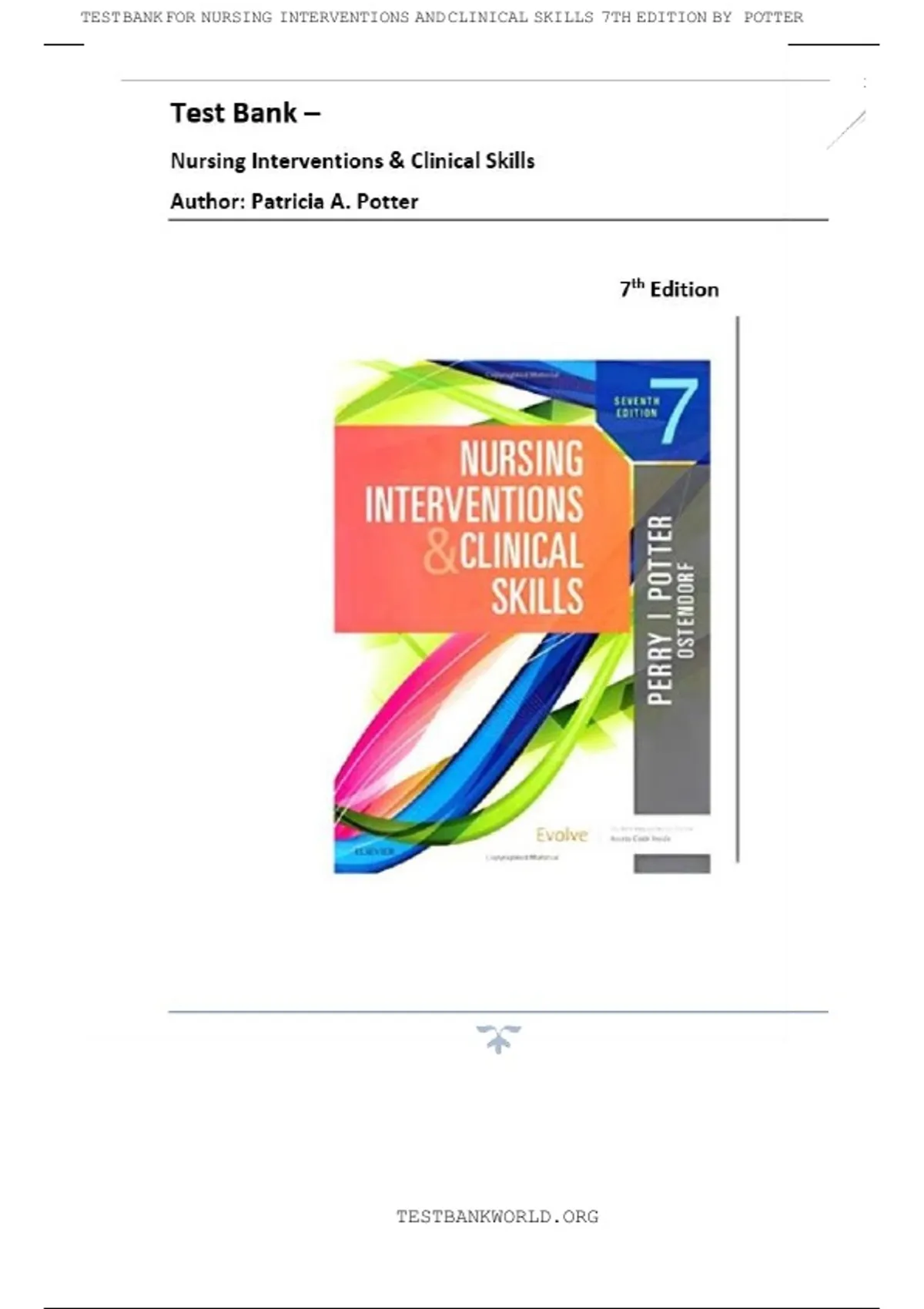 , TEST BANK FOR NURSING INTERVENTIONS AND CLINICAL SKILLS 7TH EDITION BY POTTER