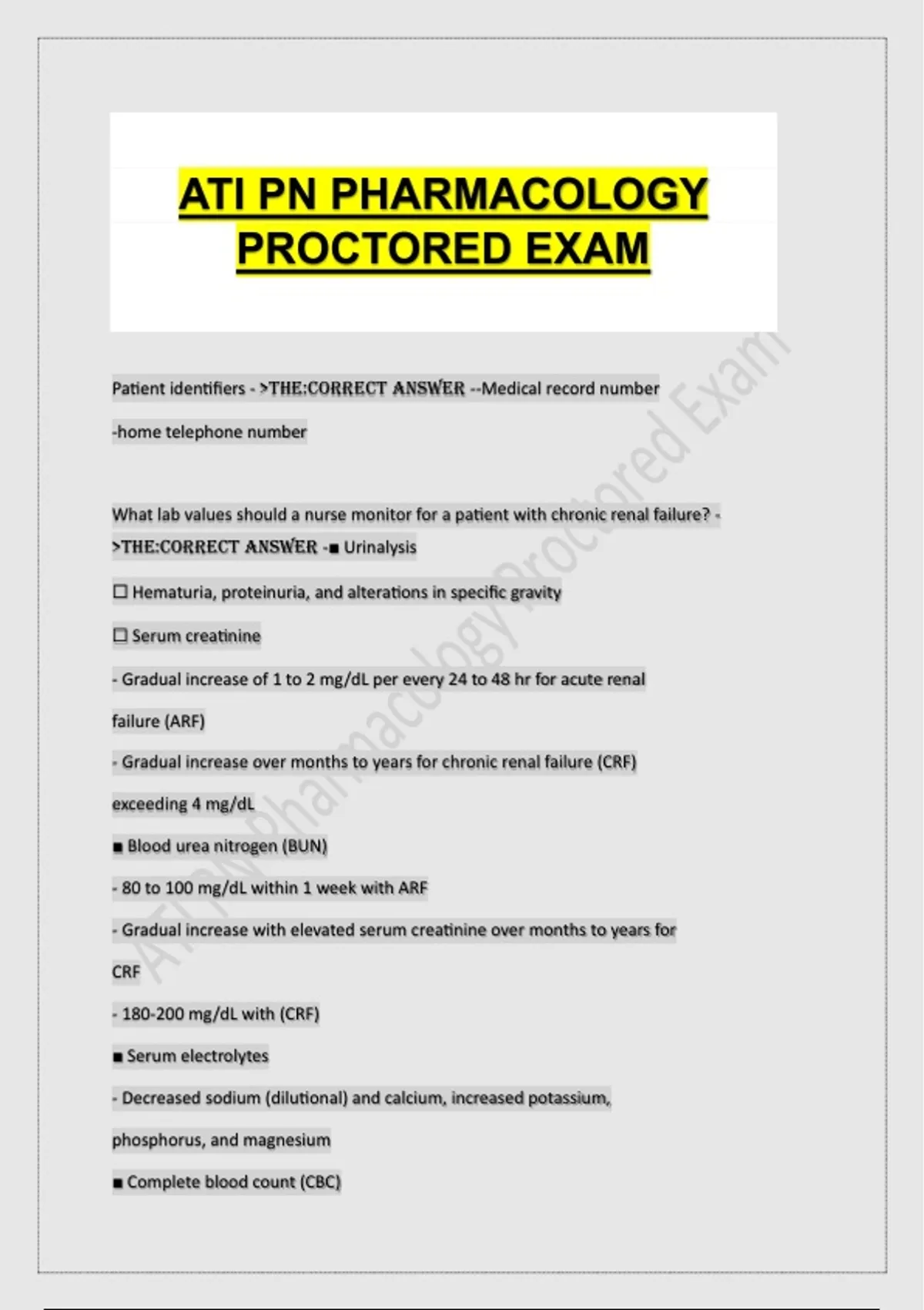 What lab values should a nurse monitor for a patient with chronic renal failure? -