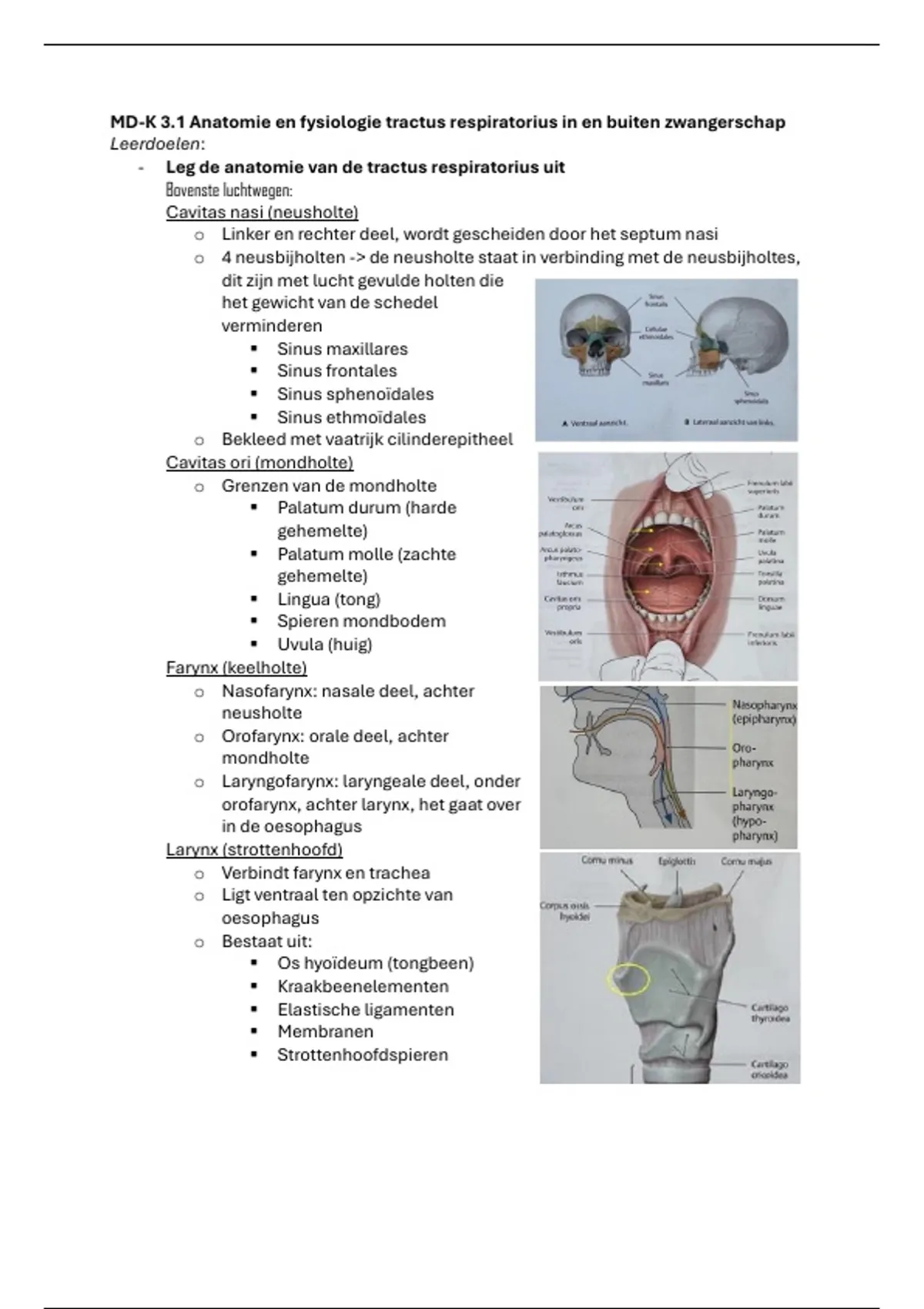 MD-K 3.1 Anatomie en fysiologie tractus respiratorius in en buiten zwangerschap