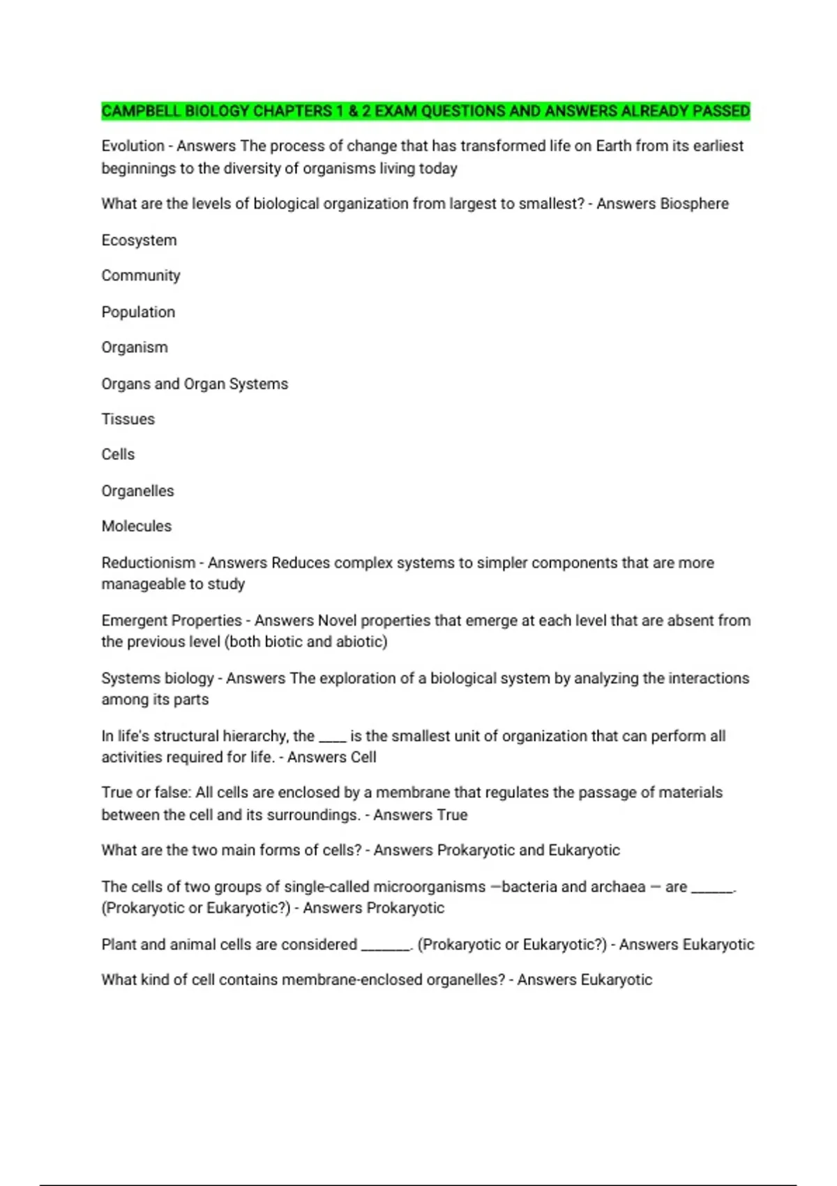 Emergent Properties - Answers Novel properties that emerge at each level that are absent from