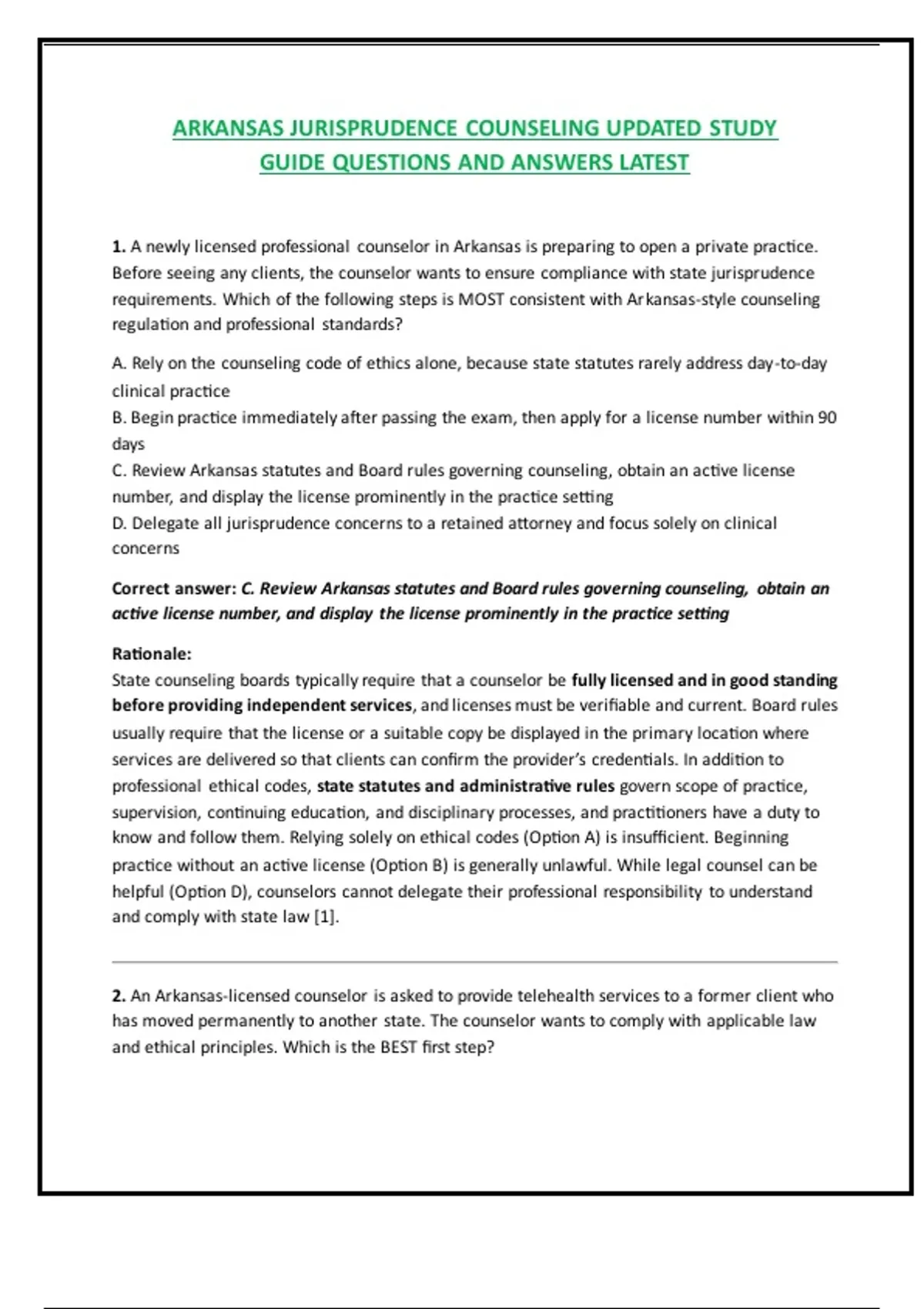ARKANSAS JURISPRUDENCE COUNSELING UPDATED STUDY