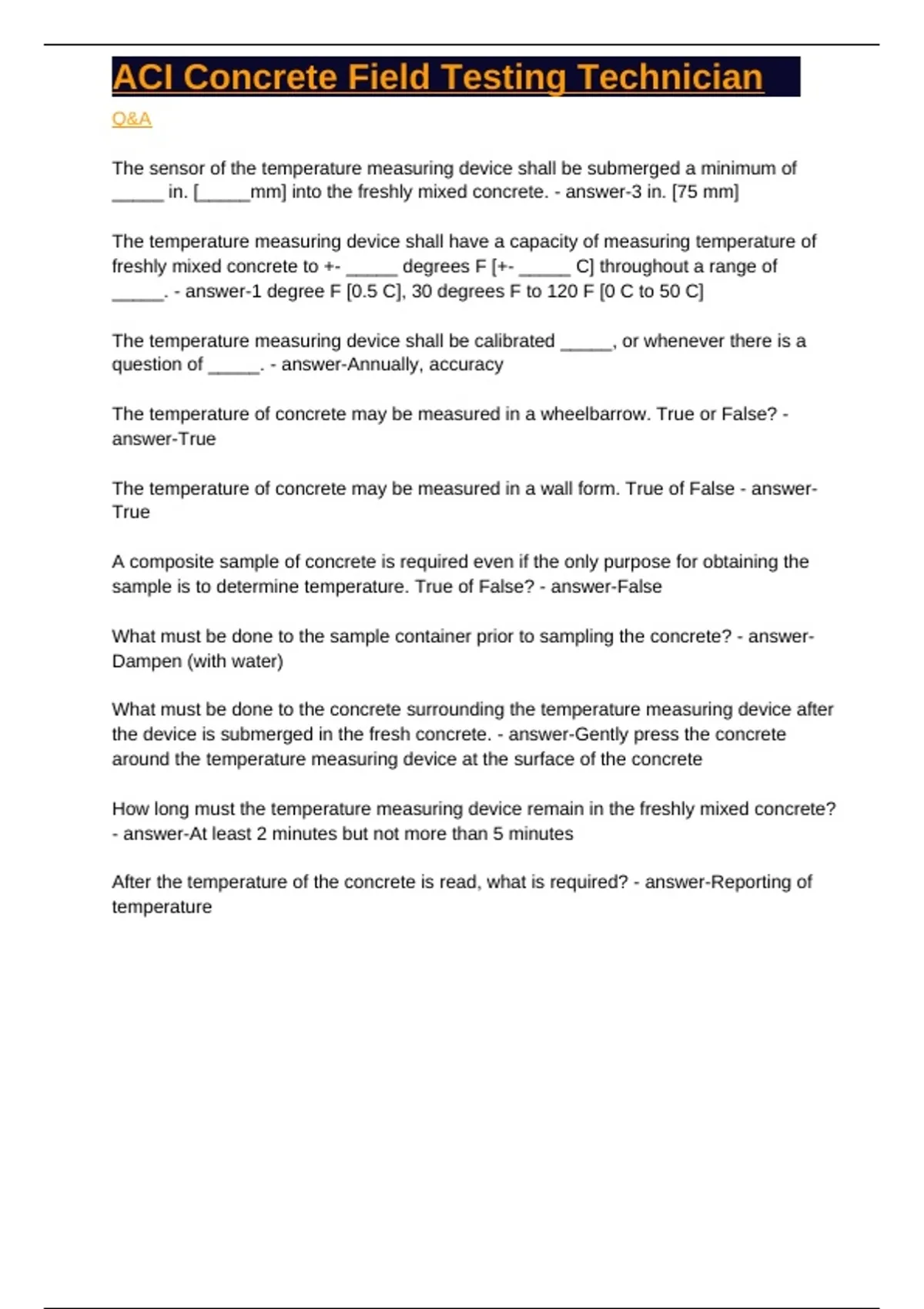 After the temperature of the concrete is read, what is required? - answer-Reporting of