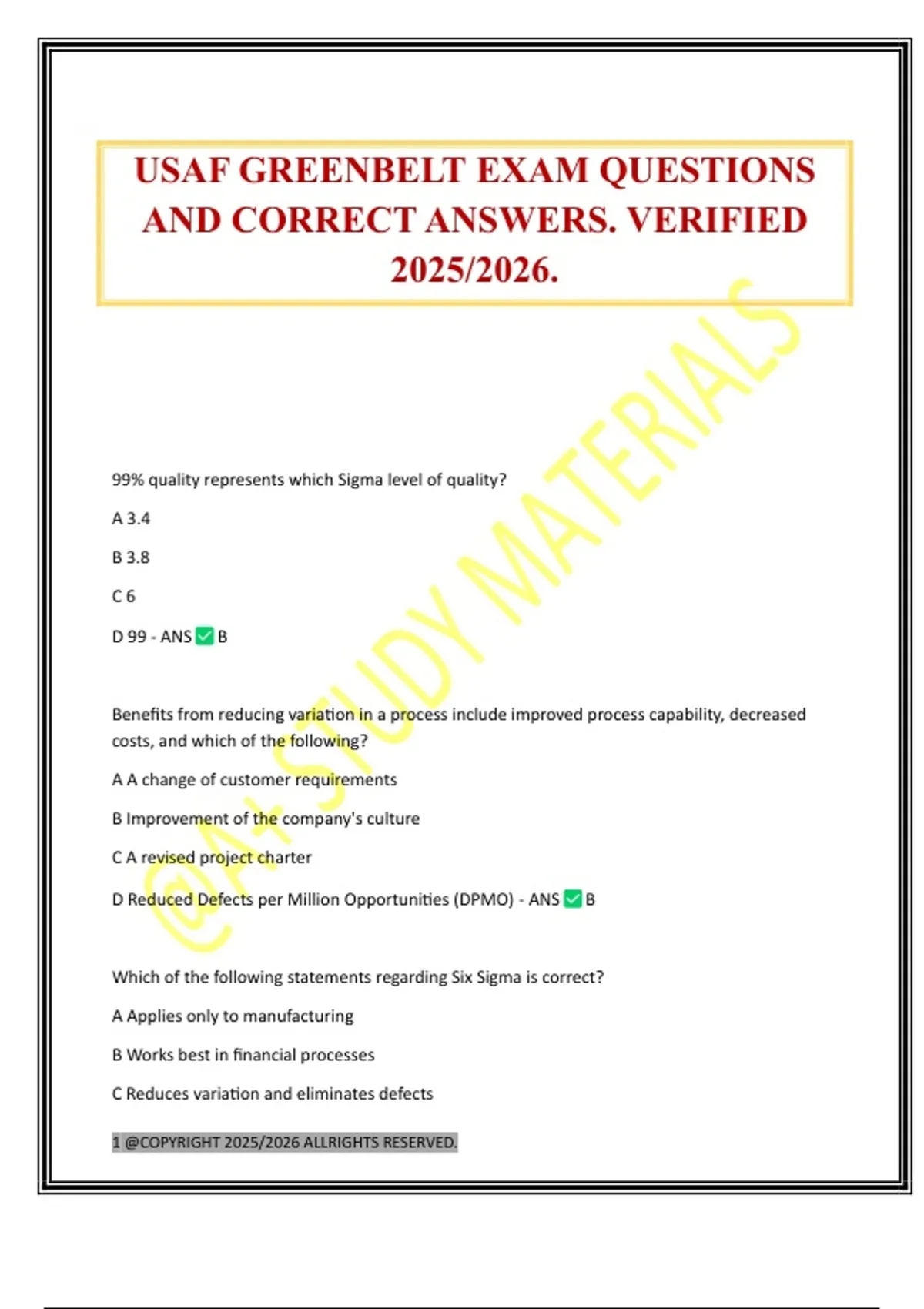 USAF GREENBELT EXAM QUESTIONS