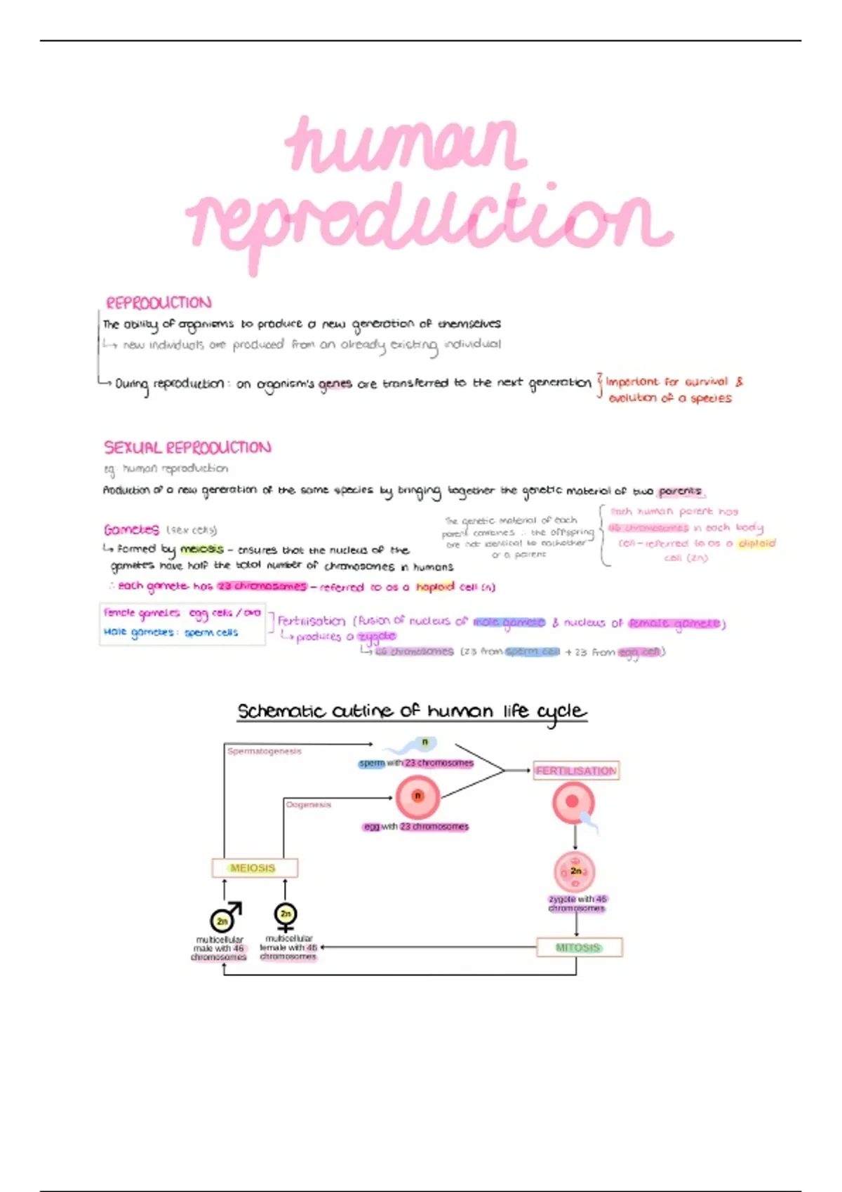 eggcells ora fertilisation fusionofnucleusofmale