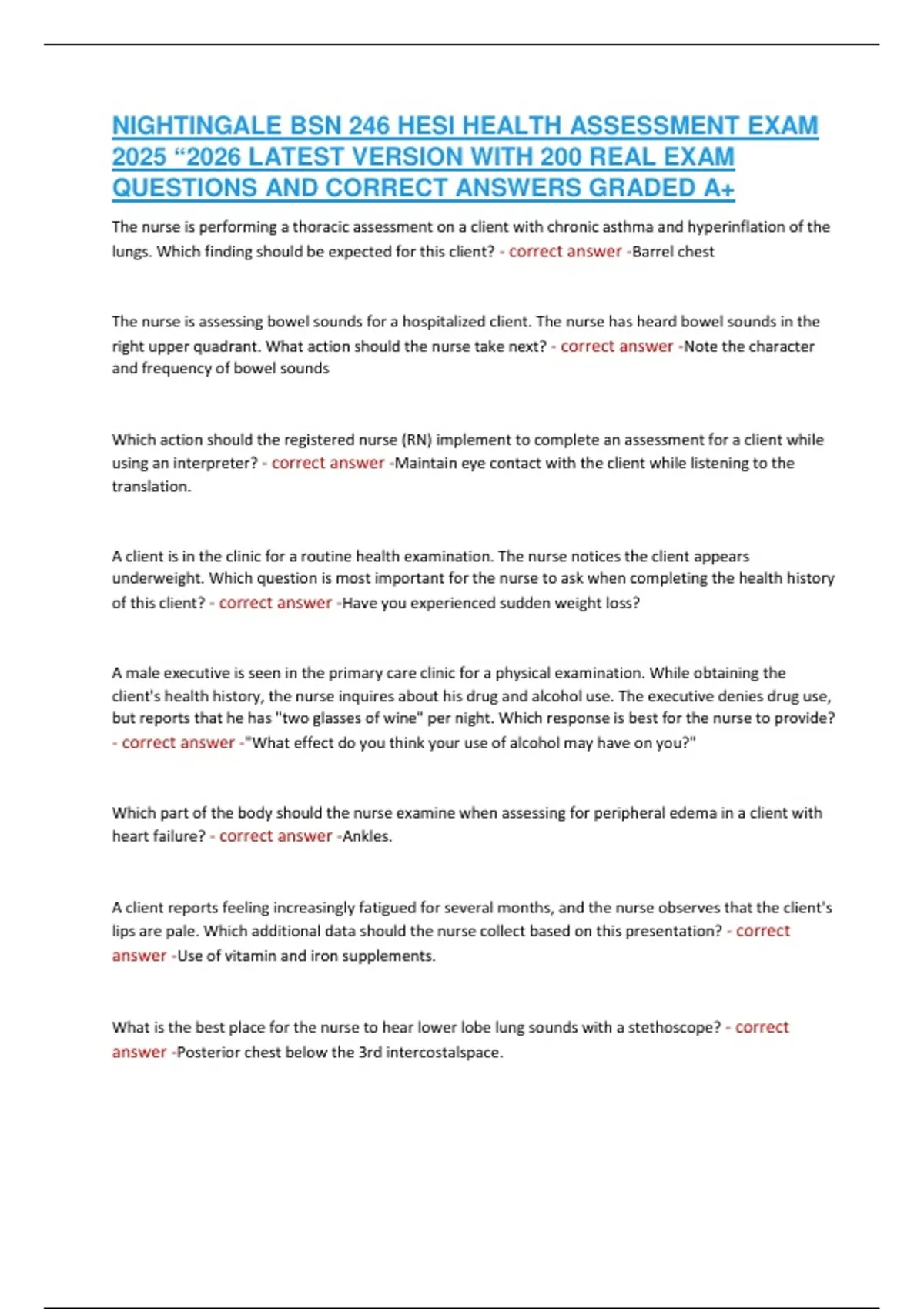 QUESTIONS AND CORRECT ANSWERS GRADED A+