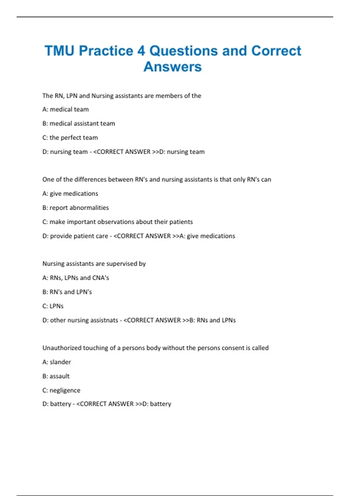 TMU Practice 4 Questions and Correct
