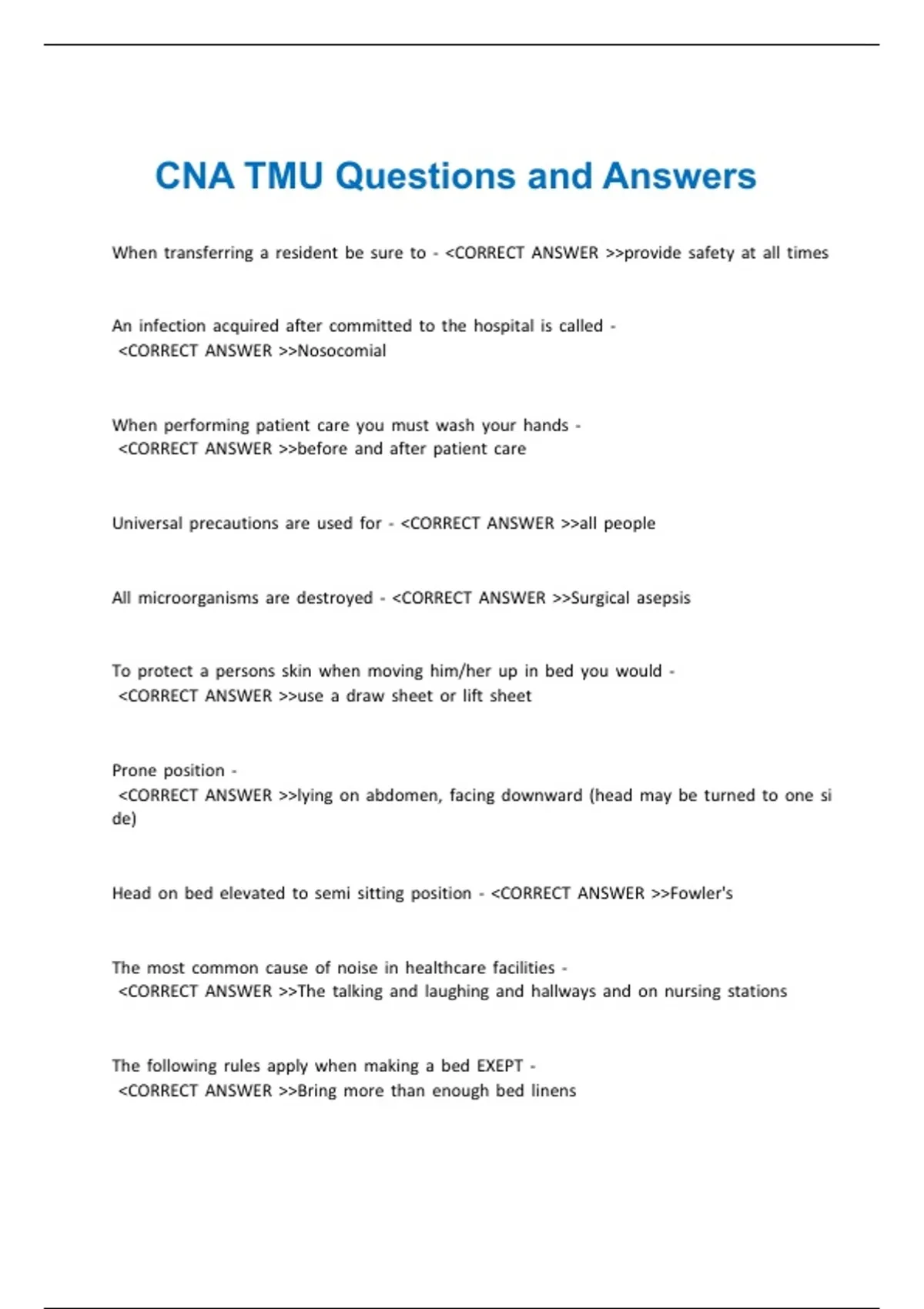 CNA TMU Questions and Answers