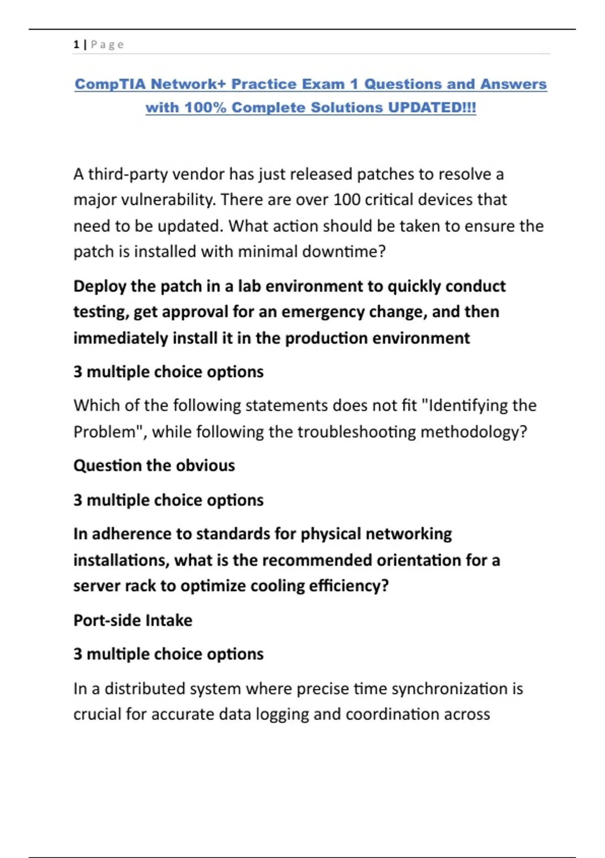 CompTIA Network+ Practice Exam 1 Questions and Answers