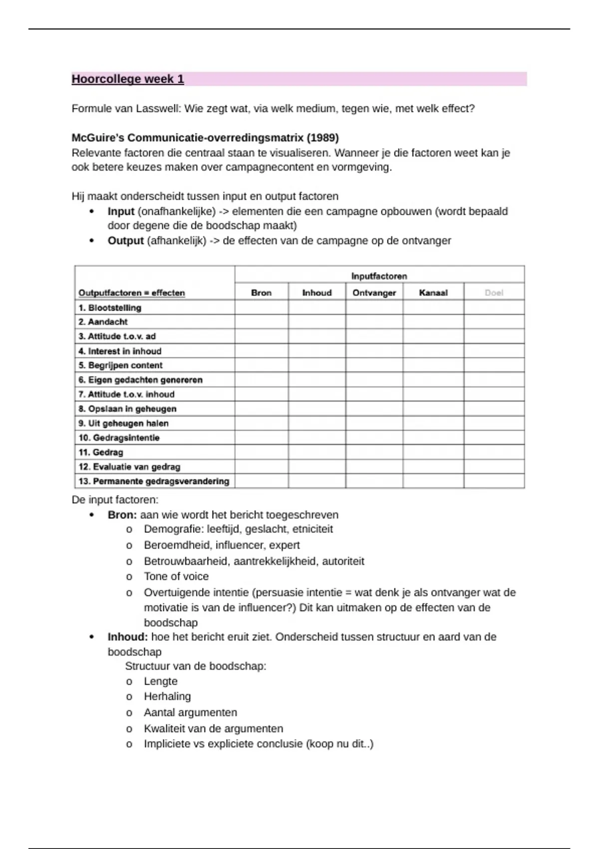 McGuire’s Communicatie-overredingsmatrix (1989)