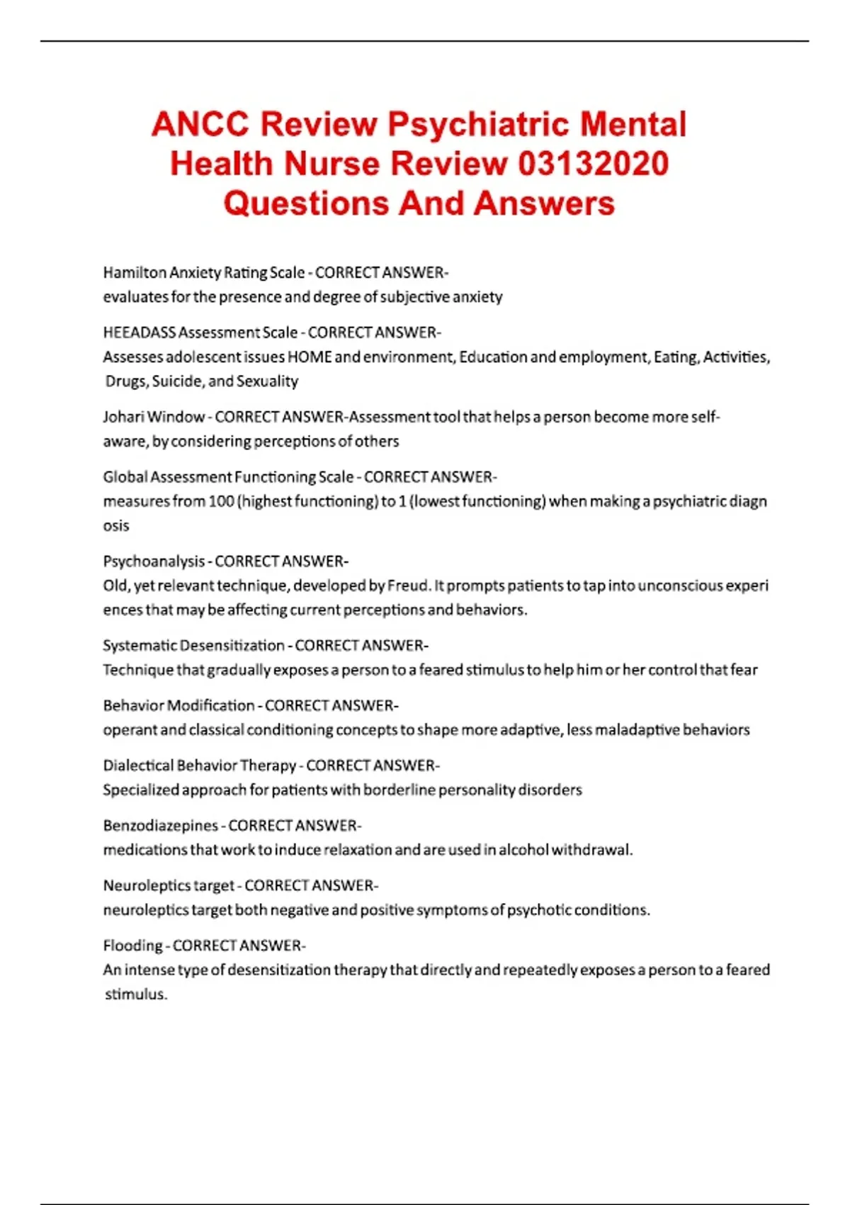ANCC Review Psychiatric Mental Health N...iew Questions And Answers.