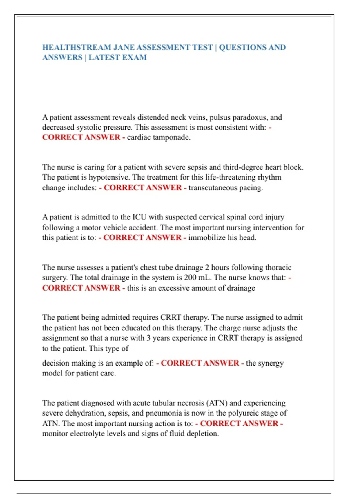 HEALTHSTREAM JANE ASSESSMENT TEST | QUESTIONS AND