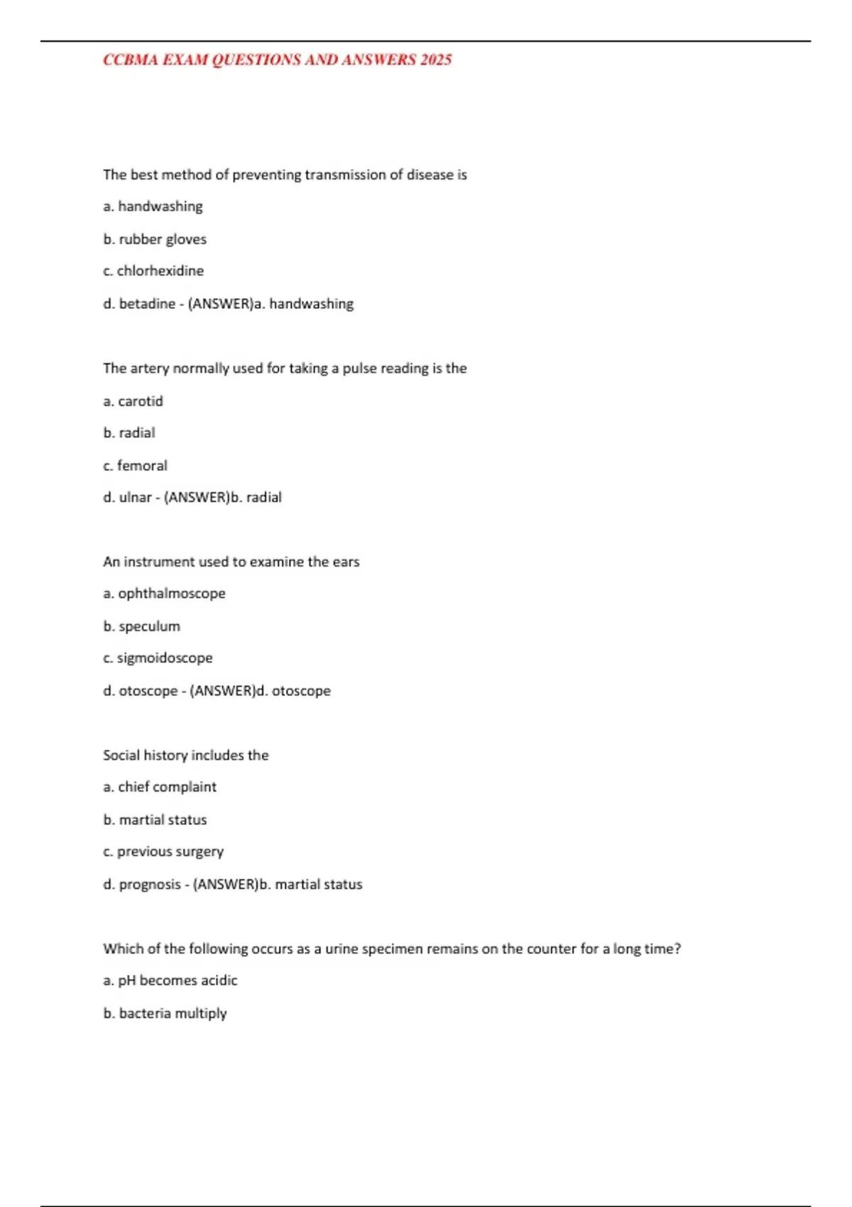 CCBMA EXAM QUESTIONS AND ANSWERS 2025