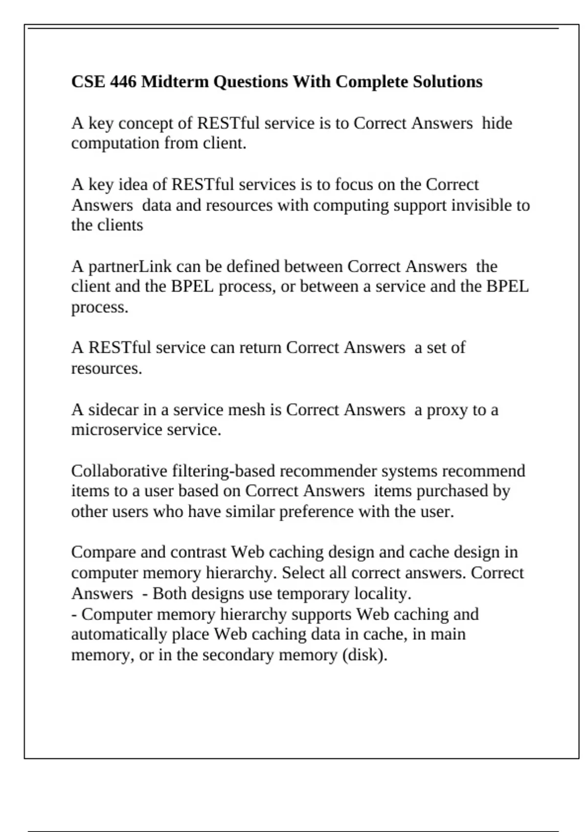 A RESTful service can return Correct Answers a set of