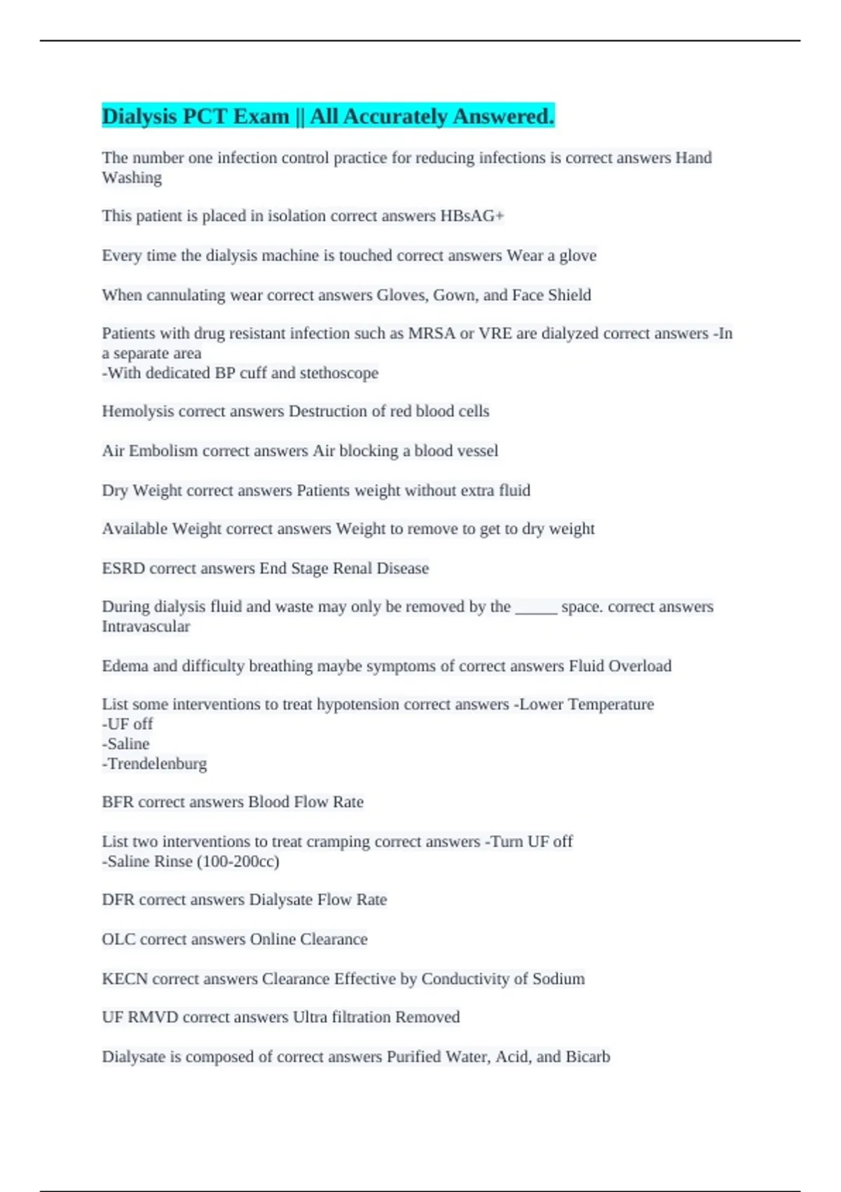 Dry Weight correct answers Patients weight without extra fluid