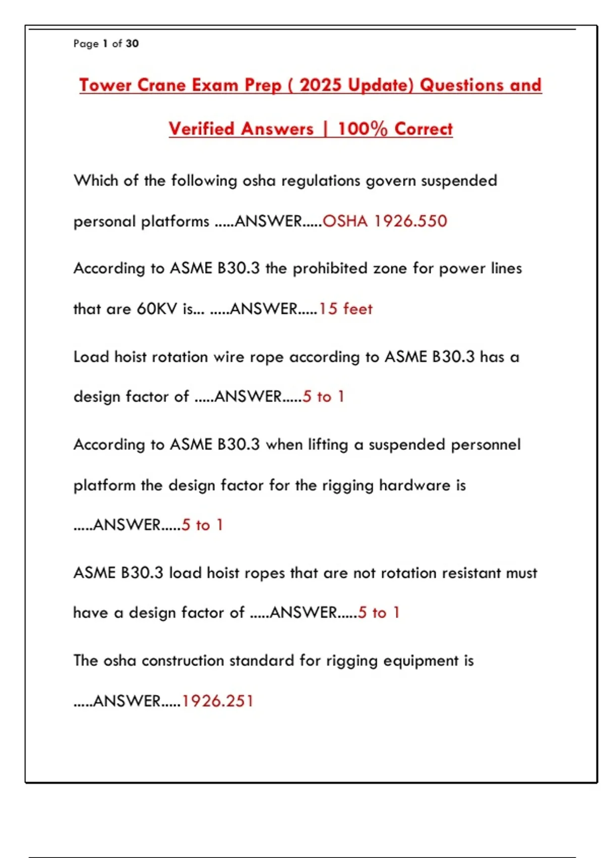Tower Crane Exam Prep ( 2025 Update) Questions and