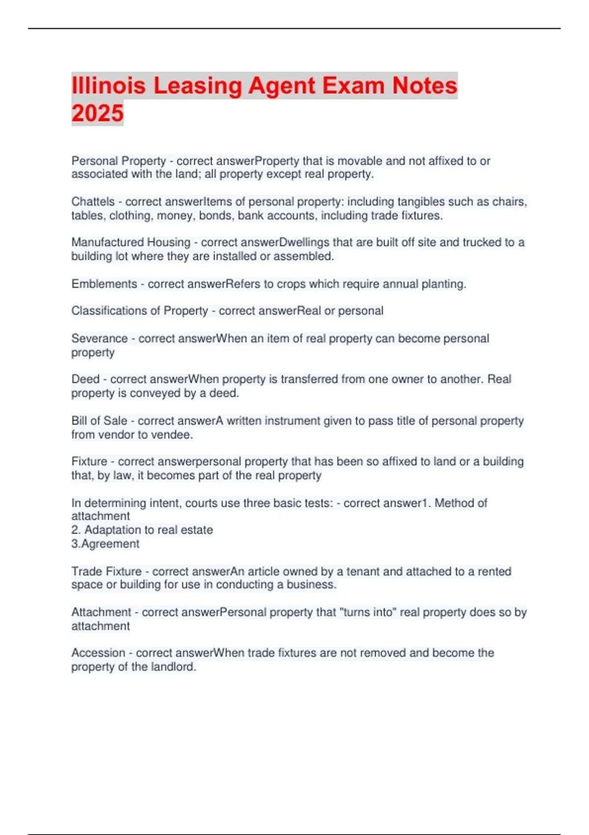 Personal Property - correct answerProperty that is movable and not affixed to or