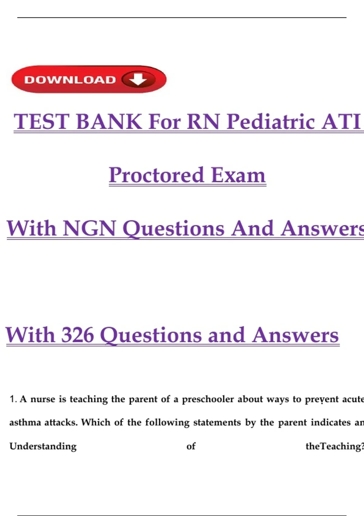 1. A nurse is teaching the parent of a preschooler about ways to preṿent acute