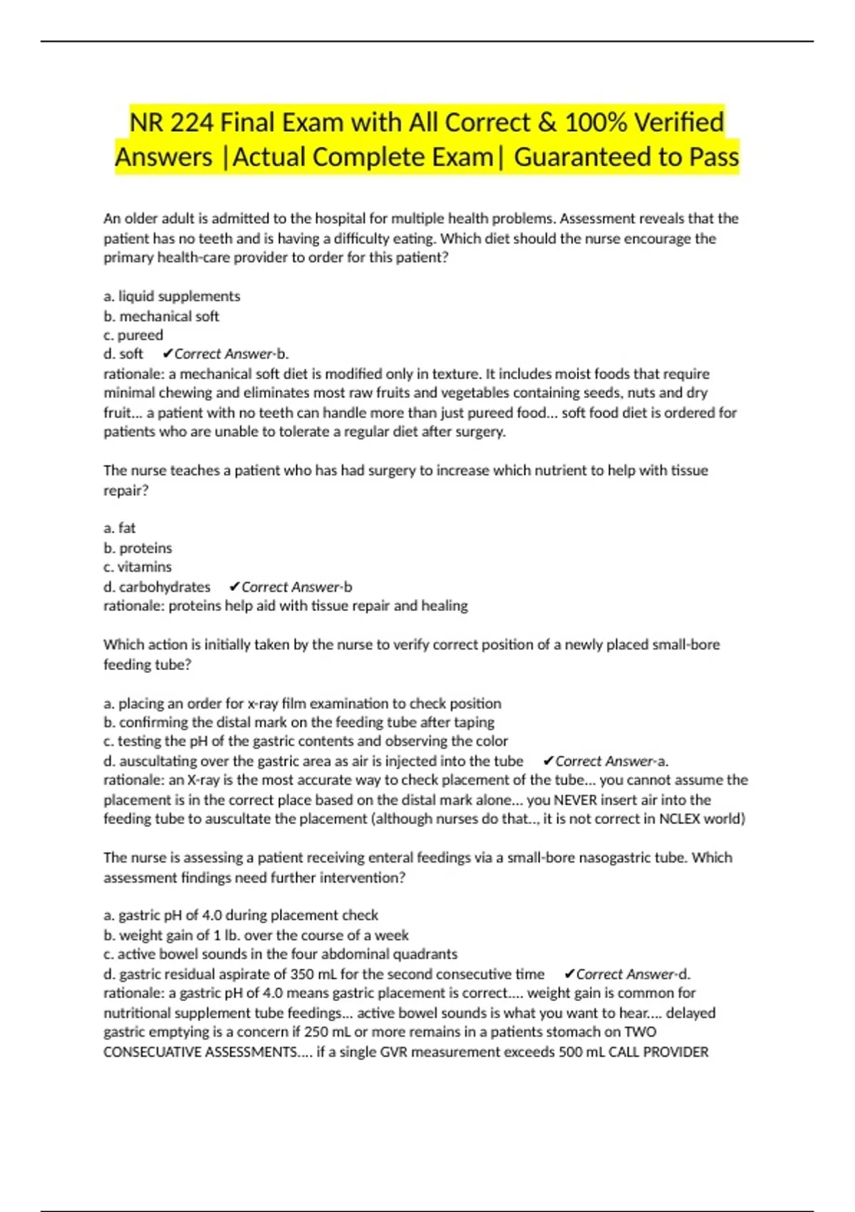 NR 224 Final Exam with All Correct & 100% Verified Answers |Actual Complete Exam| Guaranteed to Pass