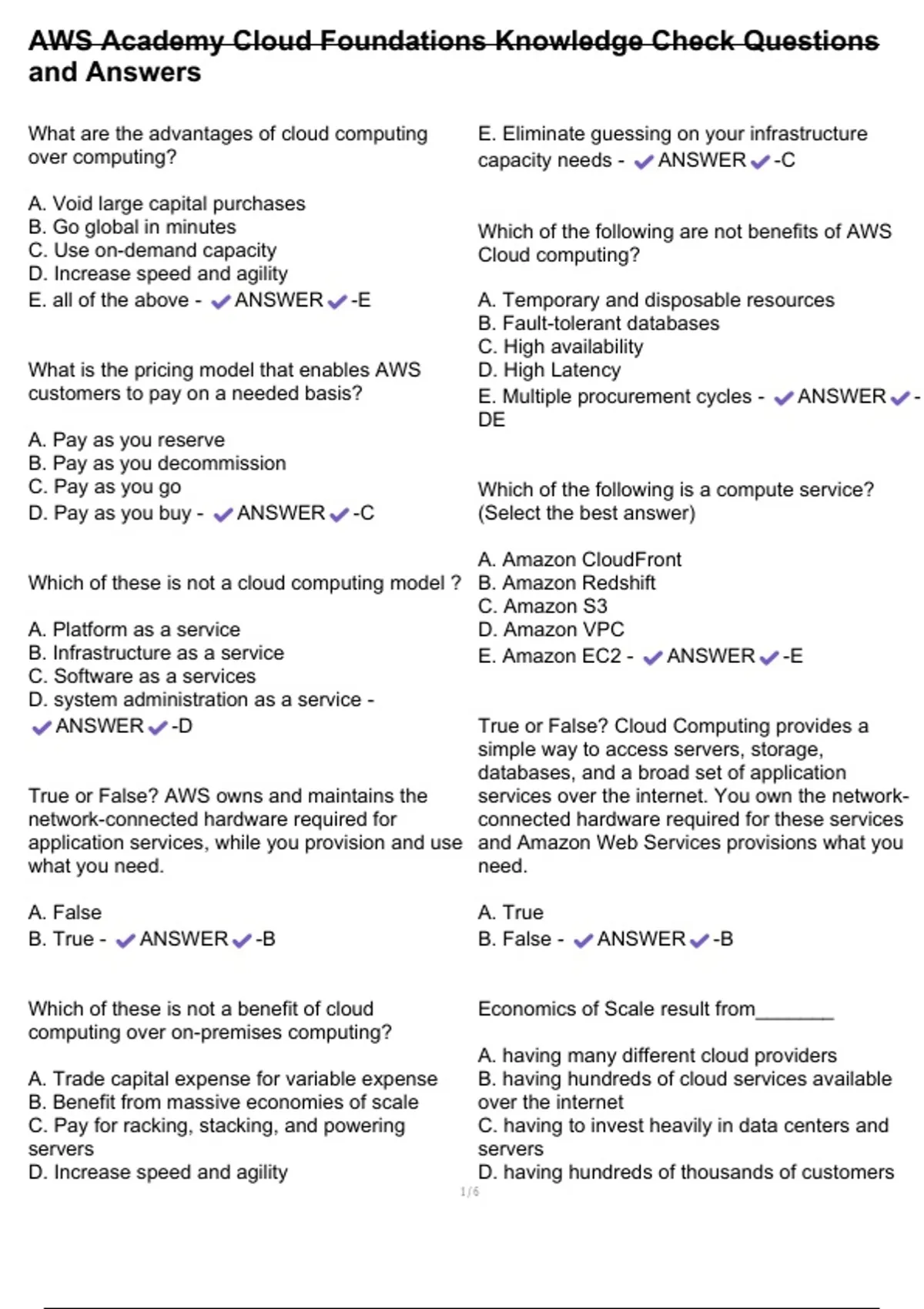 , AWS Academy Cloud Foundations Knowledge Check Questions