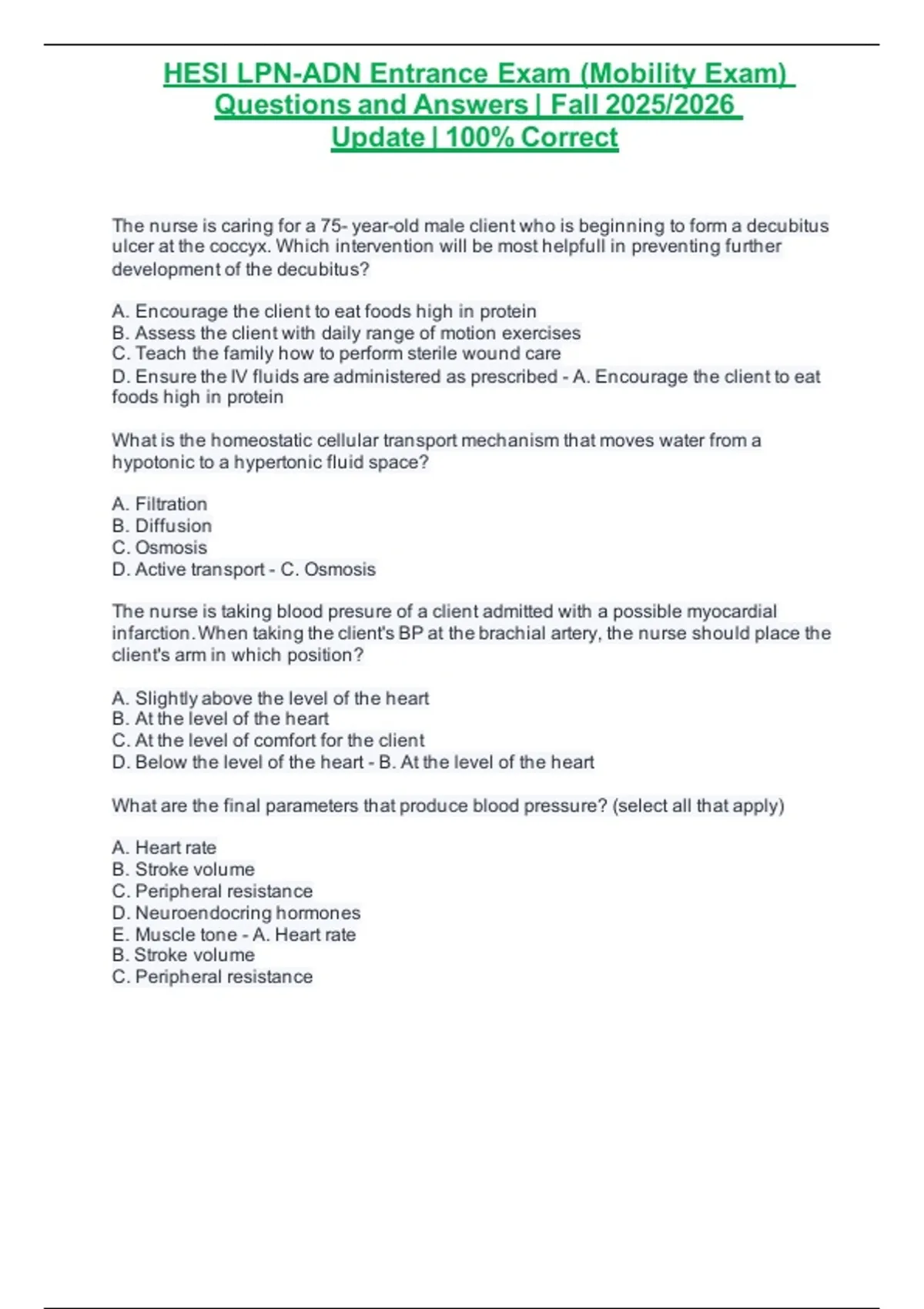 HESI LPN-ADN Entrance Exam (Mobility Exam) Questions  and  Answers | Fall 2025/2026 Update | 100% Correct