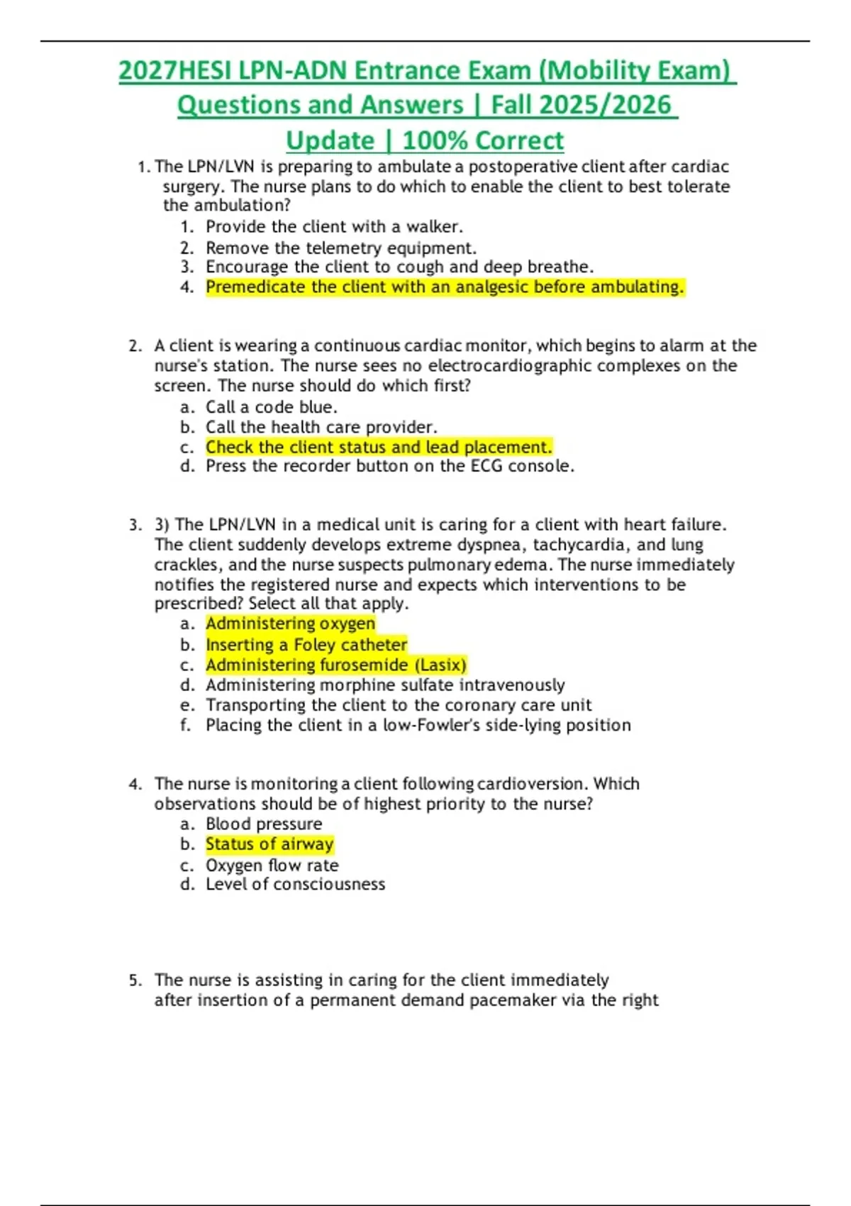 2027HESI LPN-ADN Entrance Exam (Mobility Exam) Questions and Answers | Fall 2025/2026 Update | 100% Correct