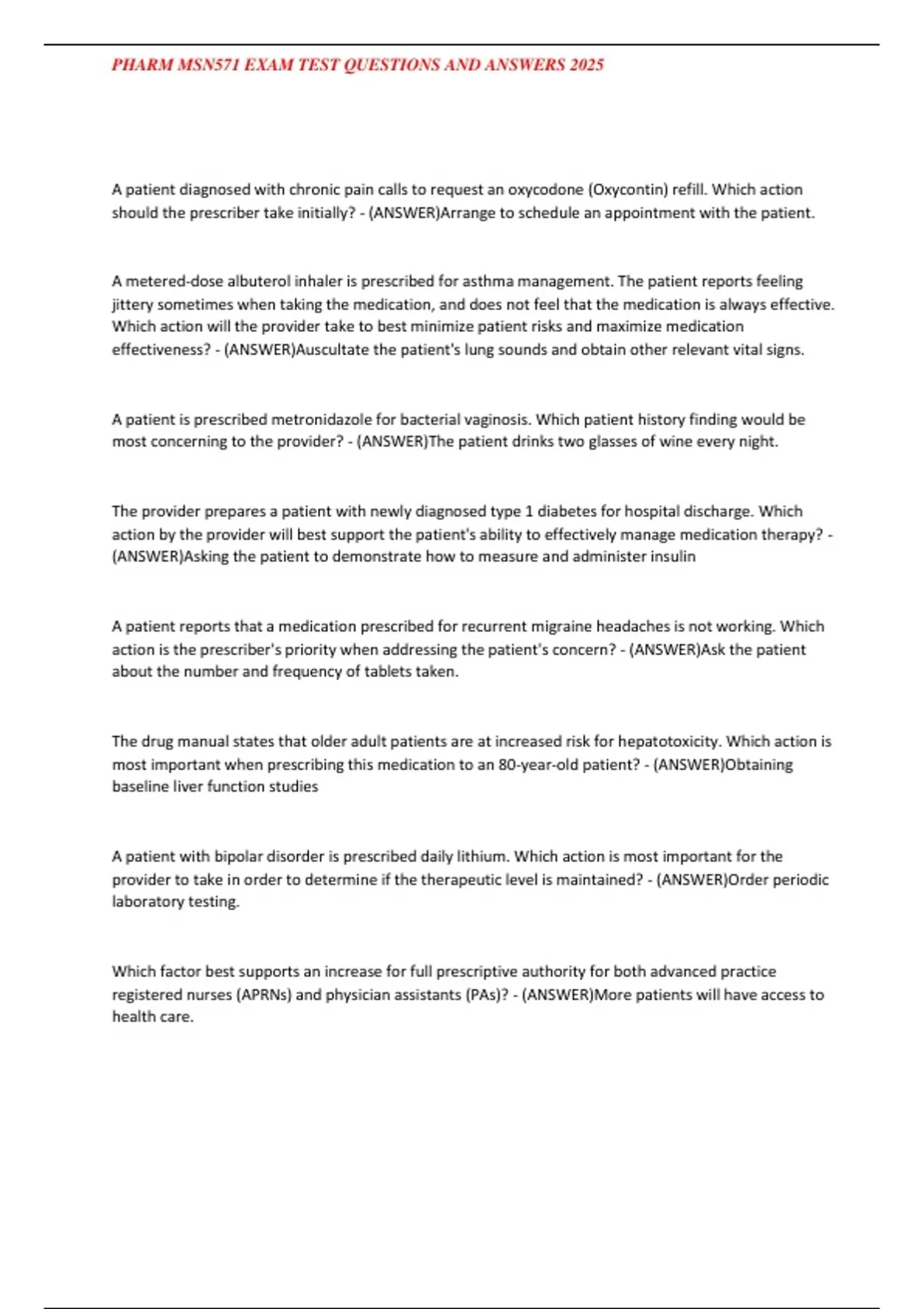 , PHARM MSN571 EXAM TEST QUESTIONS AND ANSWERS 2025