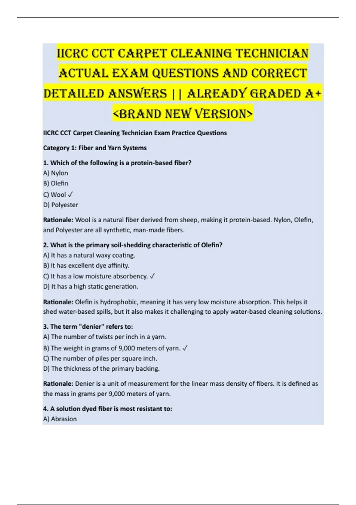IICRC CCT Carpet Cleaning Technician Exam Practice Questions