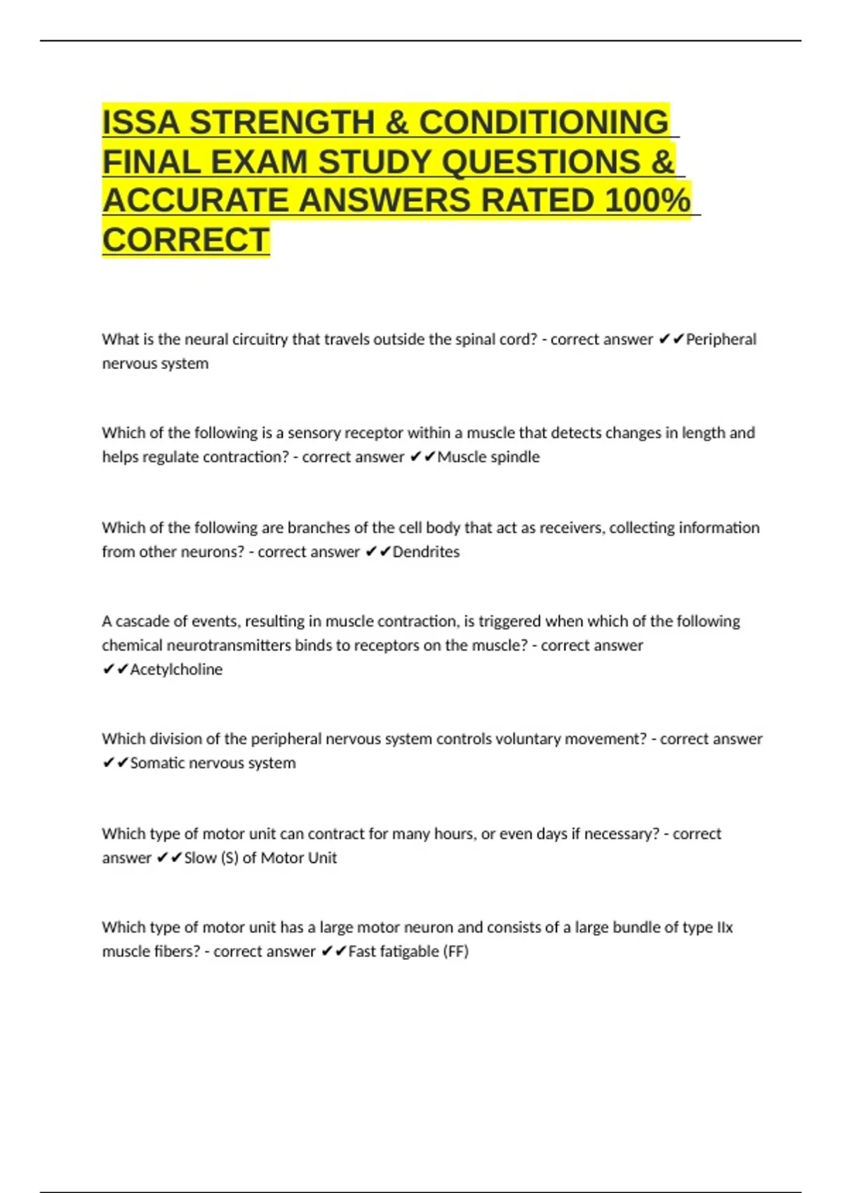 ISSA STRENGTH & CONDITIONING FINAL EXAM STUDY QUESTIONS & ACCURATE ANSWERS RATED 100% CORRECT