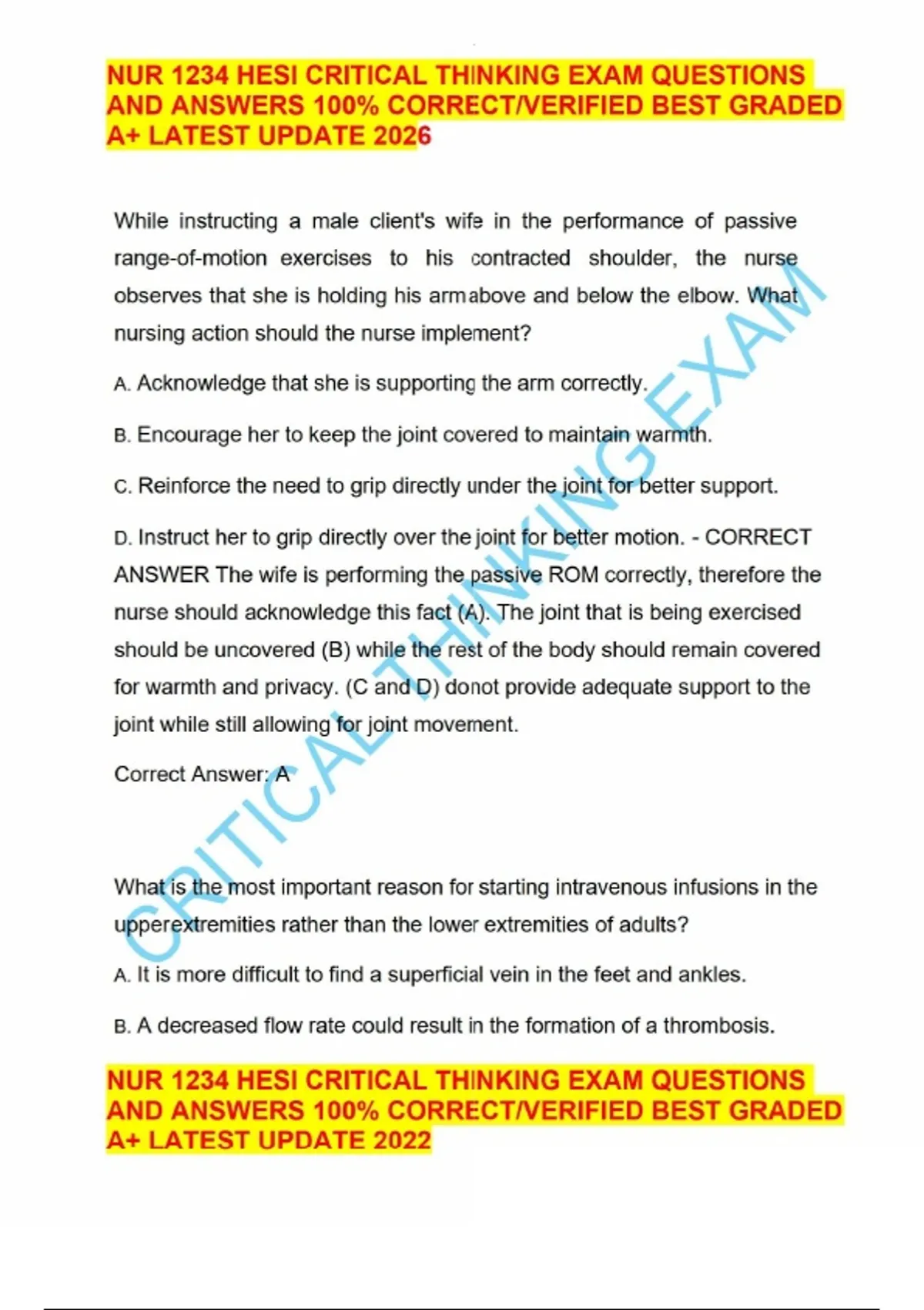 NUR 1234 – HESI Critical Thinking Exam Questions and Answers (100% Correct, Verified, Best A+ Grade, Latest 2026 Update)