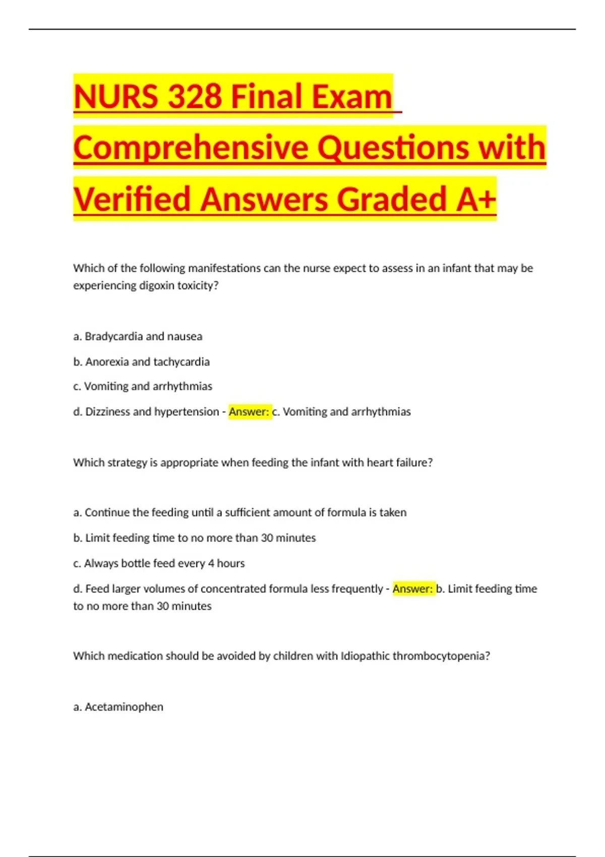 Verified Answers Graded A+
