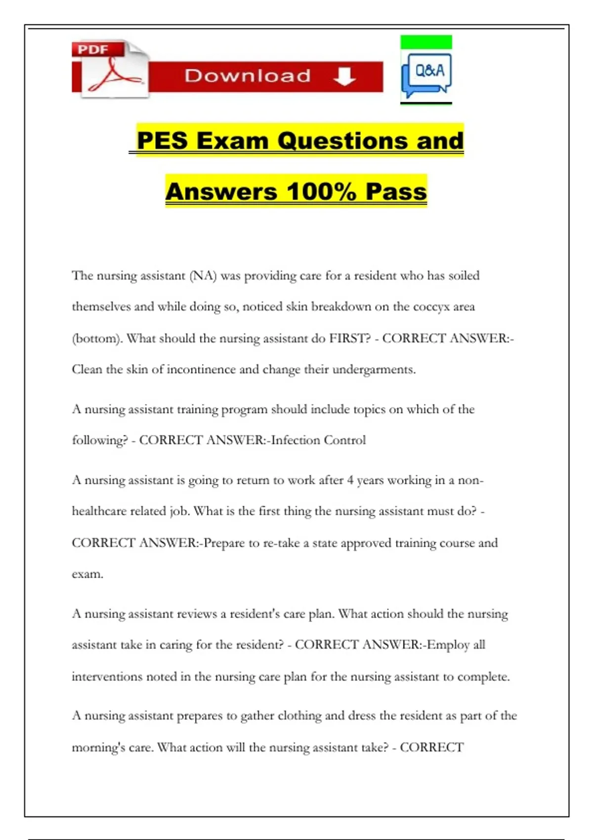 PES Exam Questions and Answers 100% Pass