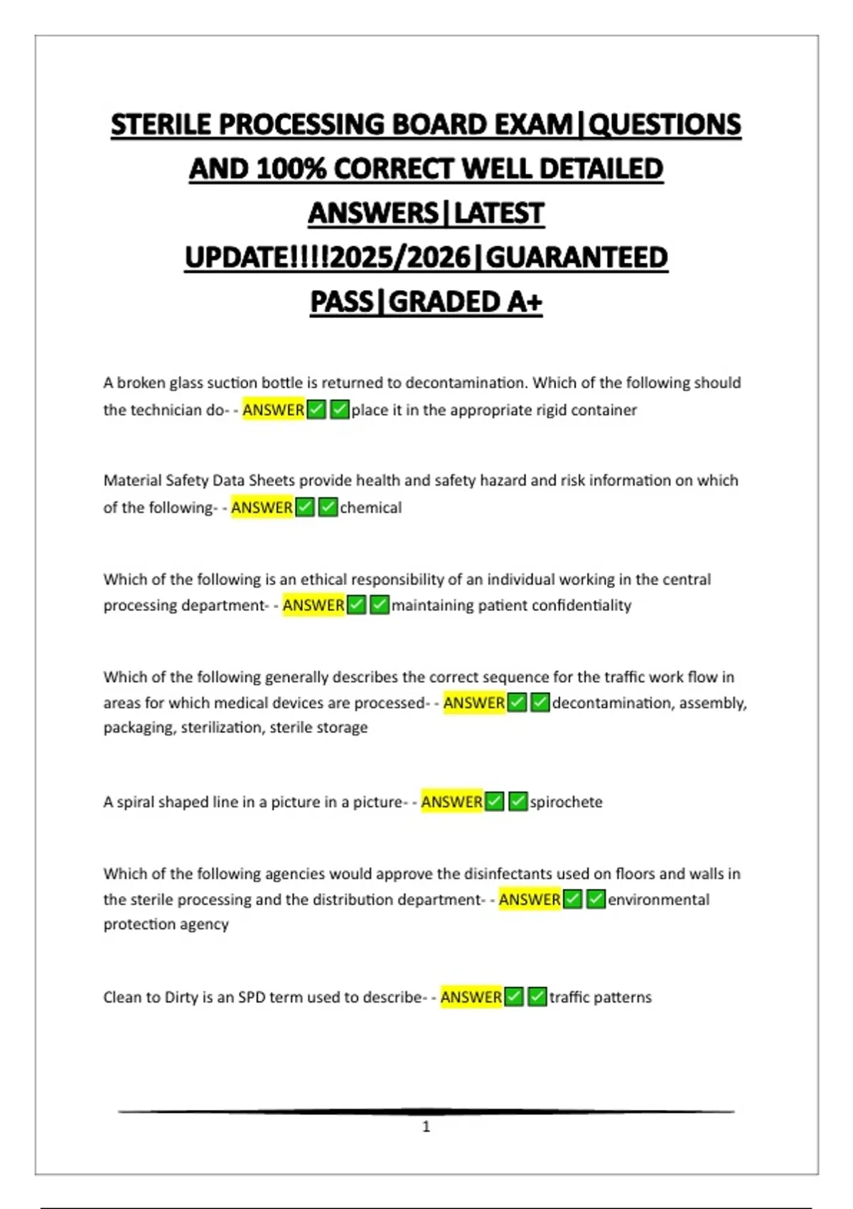STERILE PROCESSING BOARD EXAM|QUESTIONS AND 100% CORRECT WELL DETAILED ANSWERS|LATEST UPDATE!!!!2025/2026|GUARANTEED PASS|GRADED A+