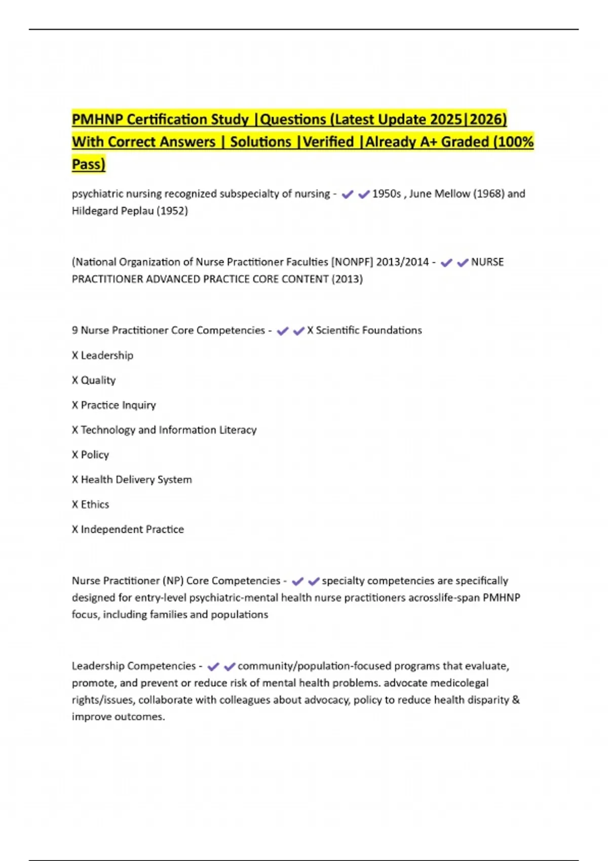 PMHNP Certification Study |Questions (Latest Update 2025|2026) With Correct Answers | Solutions |Verified |Already A+ Graded (100% Pass)