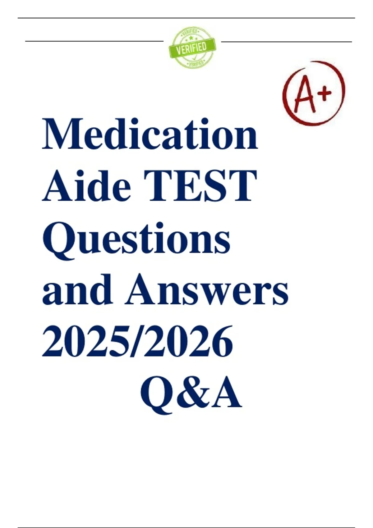 Medication Aide TEST Questions and Answers 2025/2026 Q&A