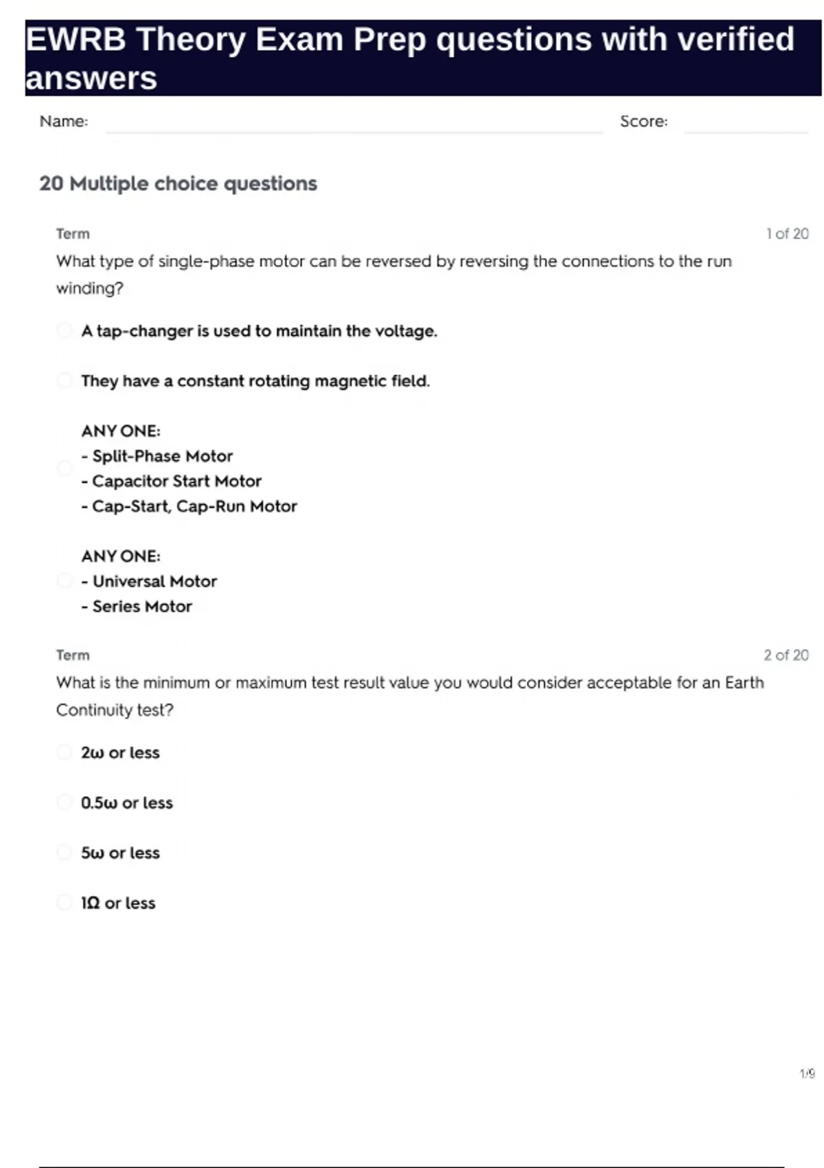 EWRB Theory Exam Prep questions with verified answers