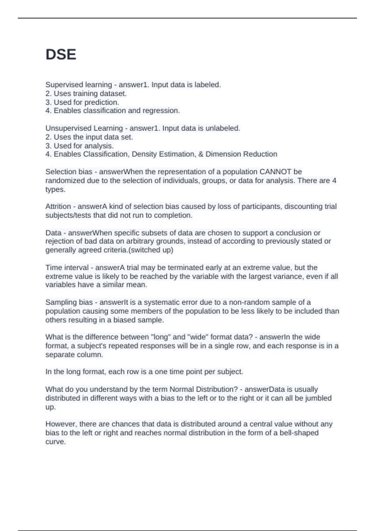 DSE QUESTIONS WITH CORRECT ANSWERS