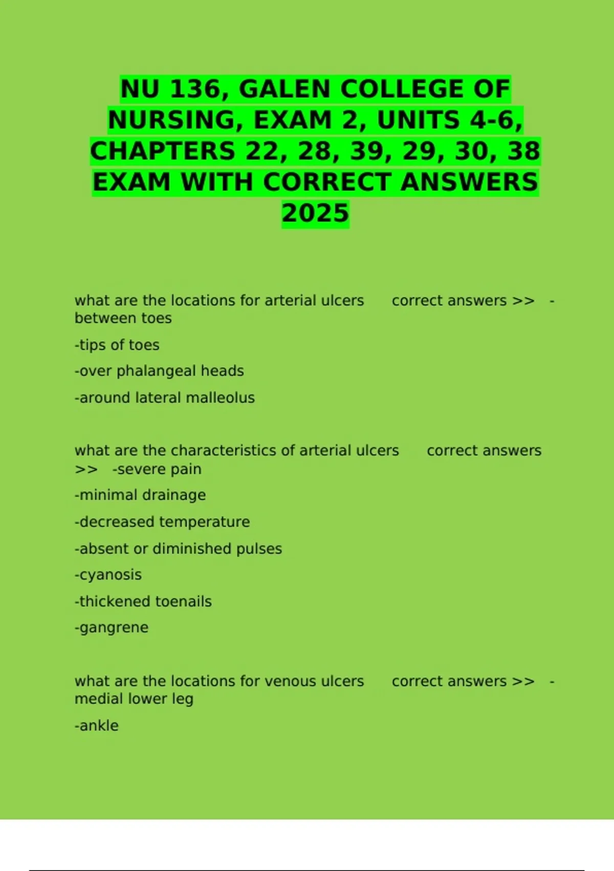 what are the locations for venous ulcers correct answers >> -