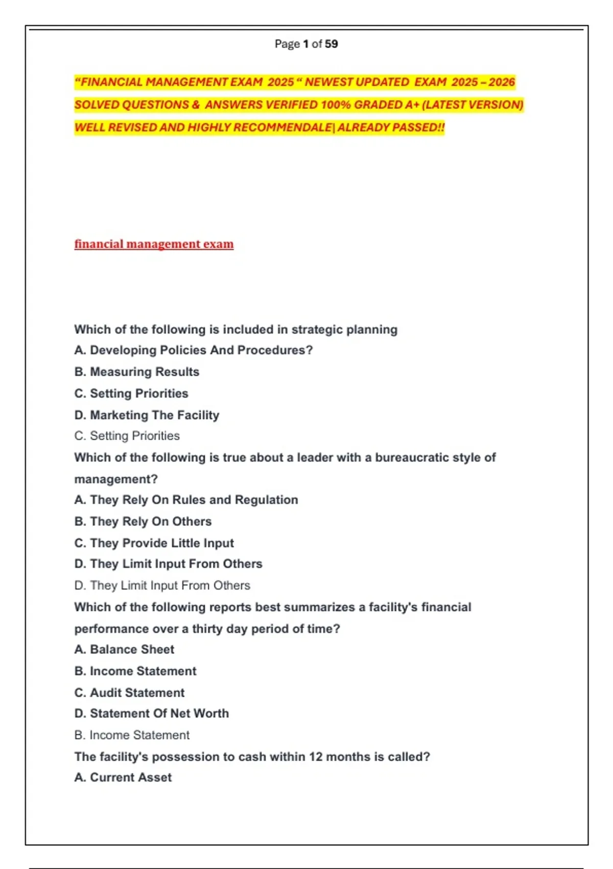 “FINANCIAL MANAGEMENT EXAM 2025 “ NEWEST UPDATED EXAM 2025 – 2026