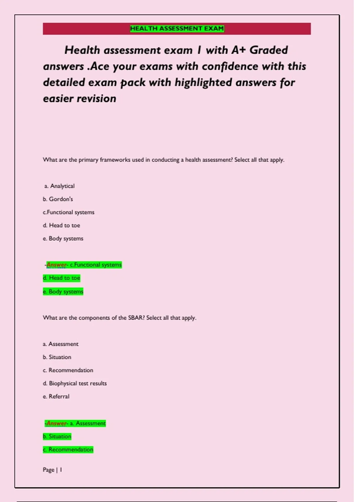 detailed exam pack with highlighted answers for