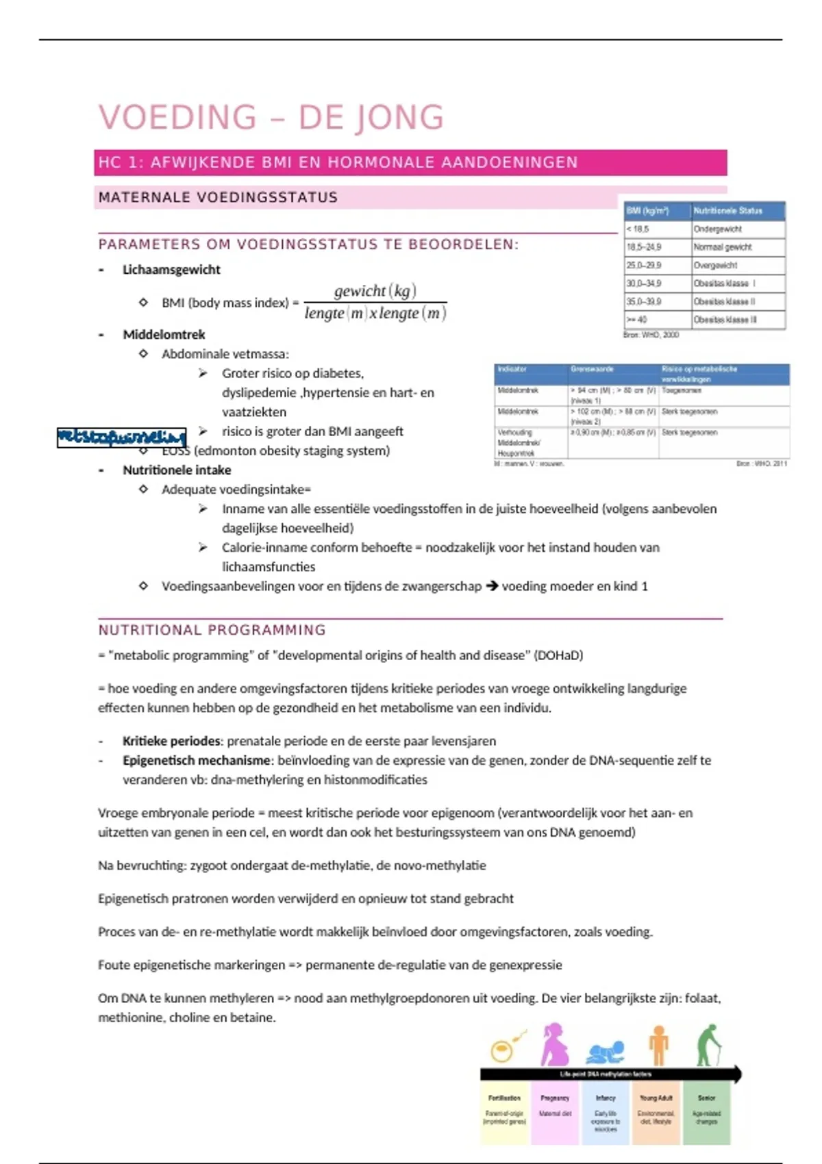 ,Meternale dieet tijdens zw => invloed op epigenoom kind en permanente veranderingen in
