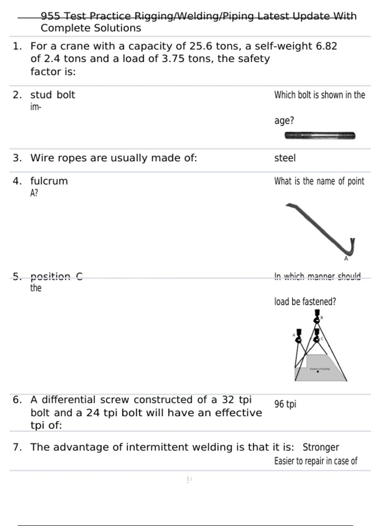 , 955 Test Practice Rigging/Welding/Piping Latest Update With