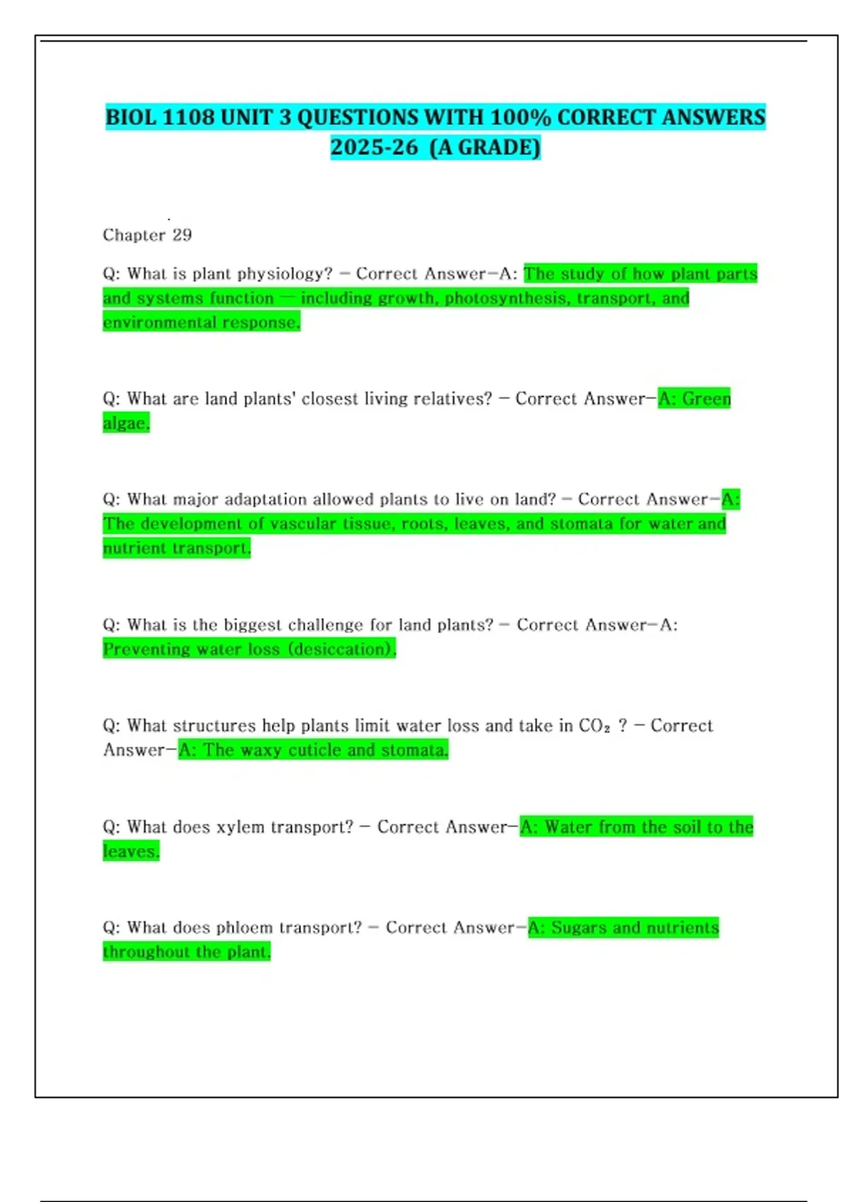 BIOL 1108 UNIT 3 QUESTIONS WITH 100% CORRECT ANSWERS 2025-26 (A GRADE)