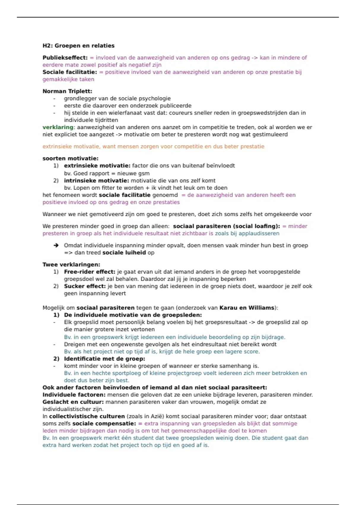 We presteren minder goed in groep dan alleen: sociaal parasiteren (social loafing): = minder